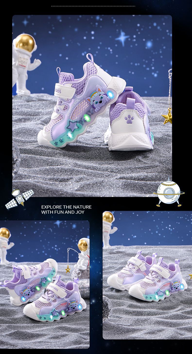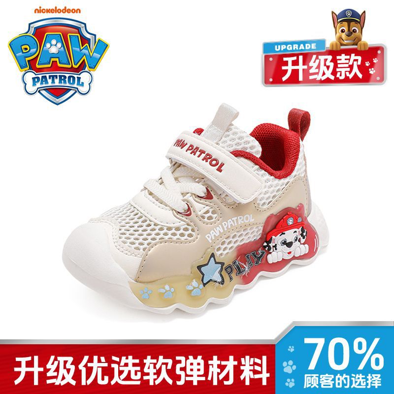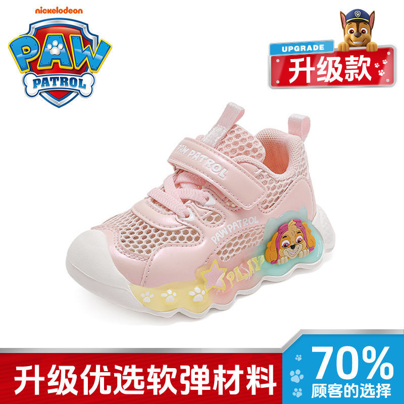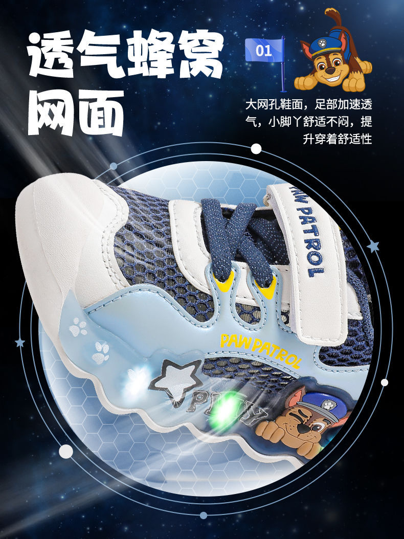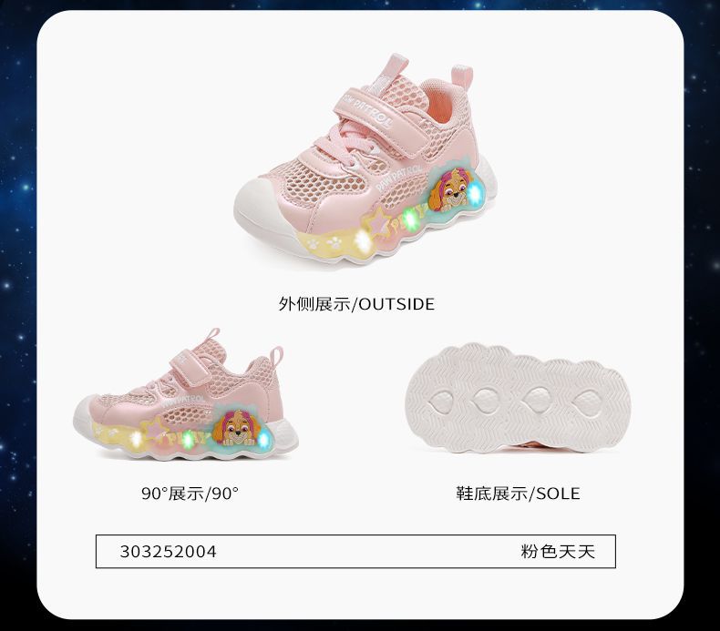 2025 Wang Wang 팀 봄 새로운 통기성 메쉬 아기 소년과 소녀는 어린이 안티 킥 부드러운 바닥을 운동화 번쩍이는 불빛을 나갑니다.스토어 가기