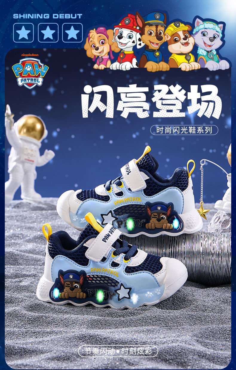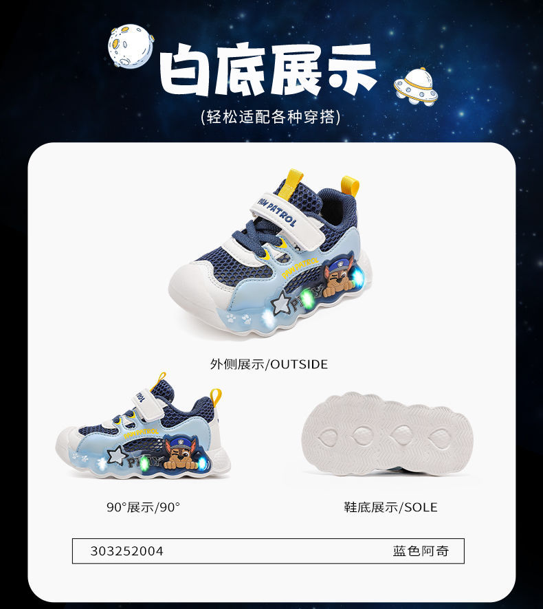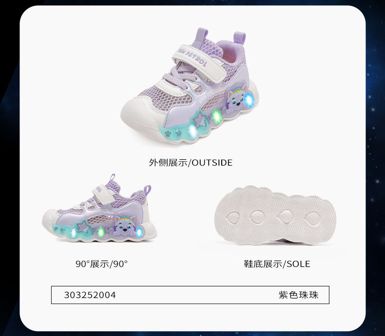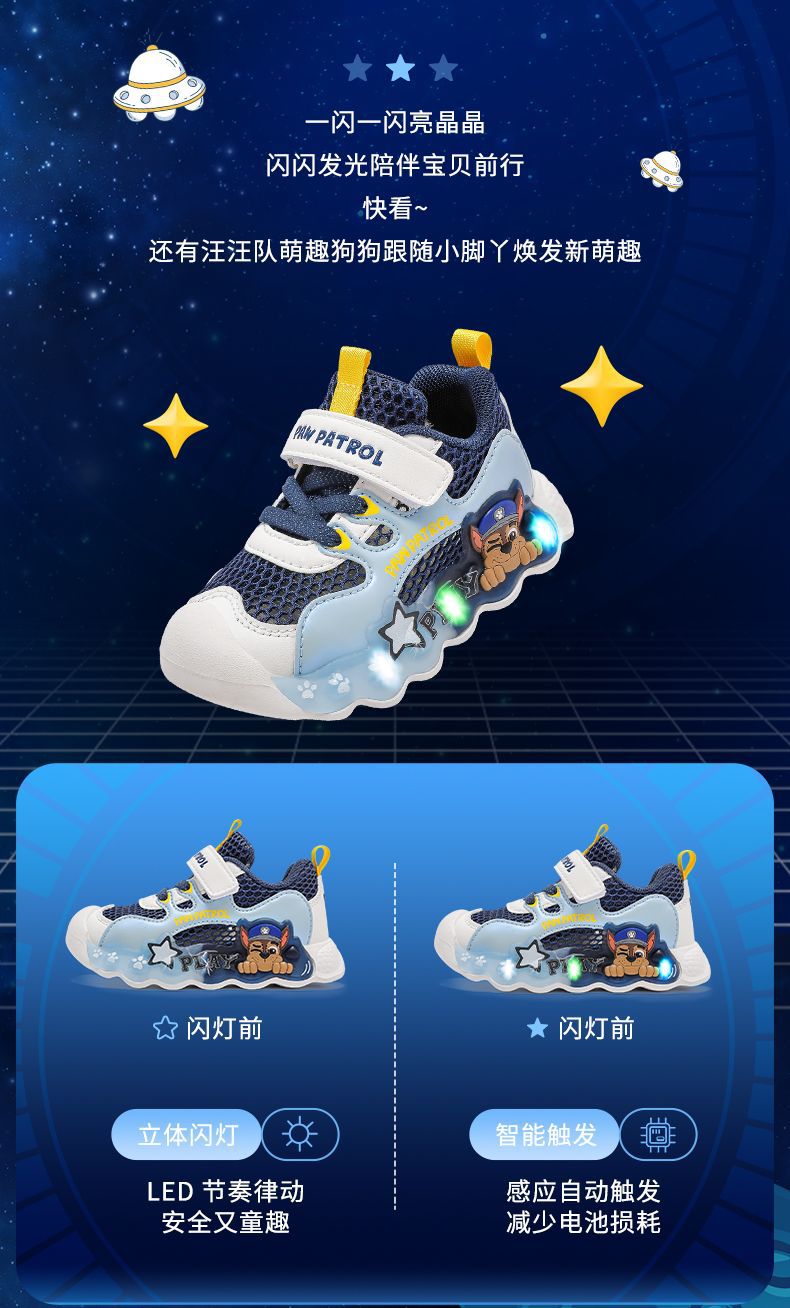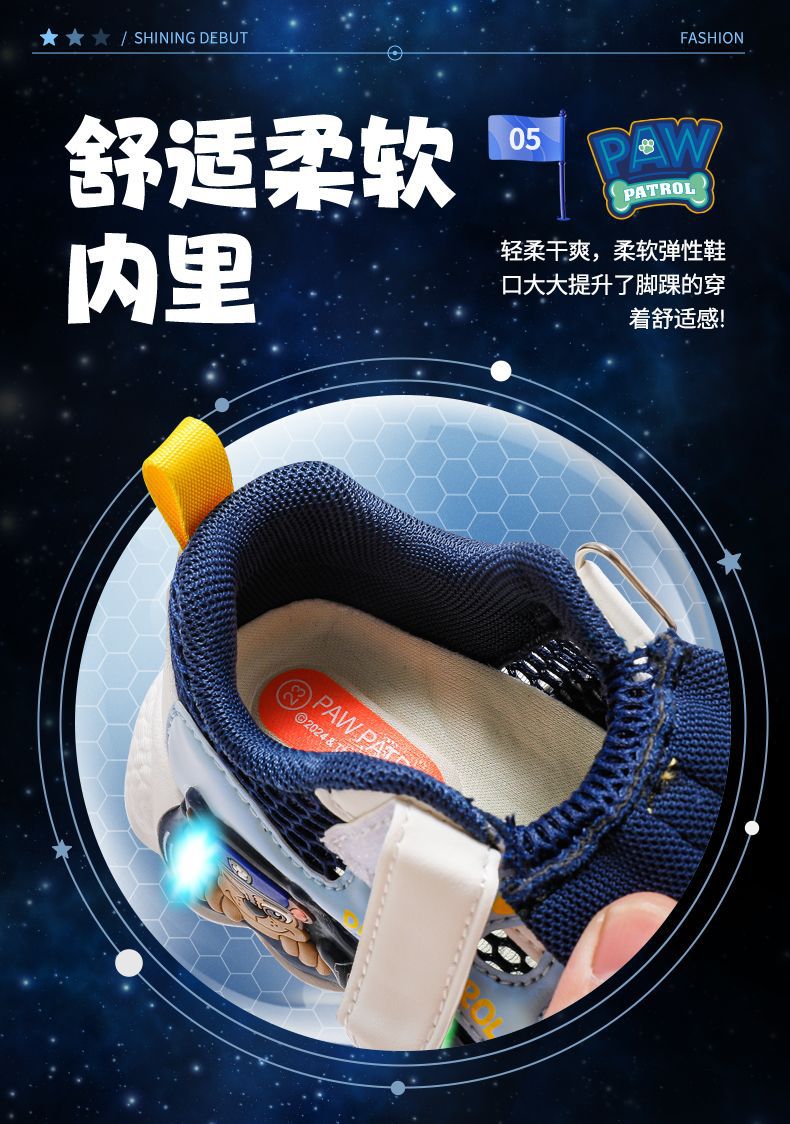 2025 Wang Wang 팀 봄 새로운 통기성 메쉬 아기 소년과 소녀는 어린이 안티 킥 부드러운 바닥을 운동화 번쩍이는 불빛을 나갑니다.스토어 가기