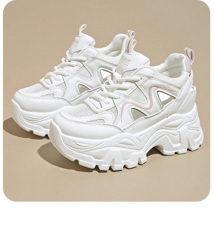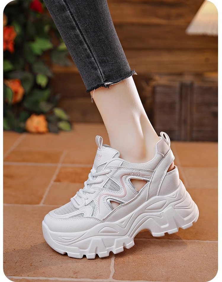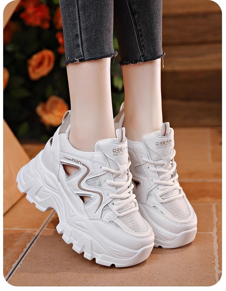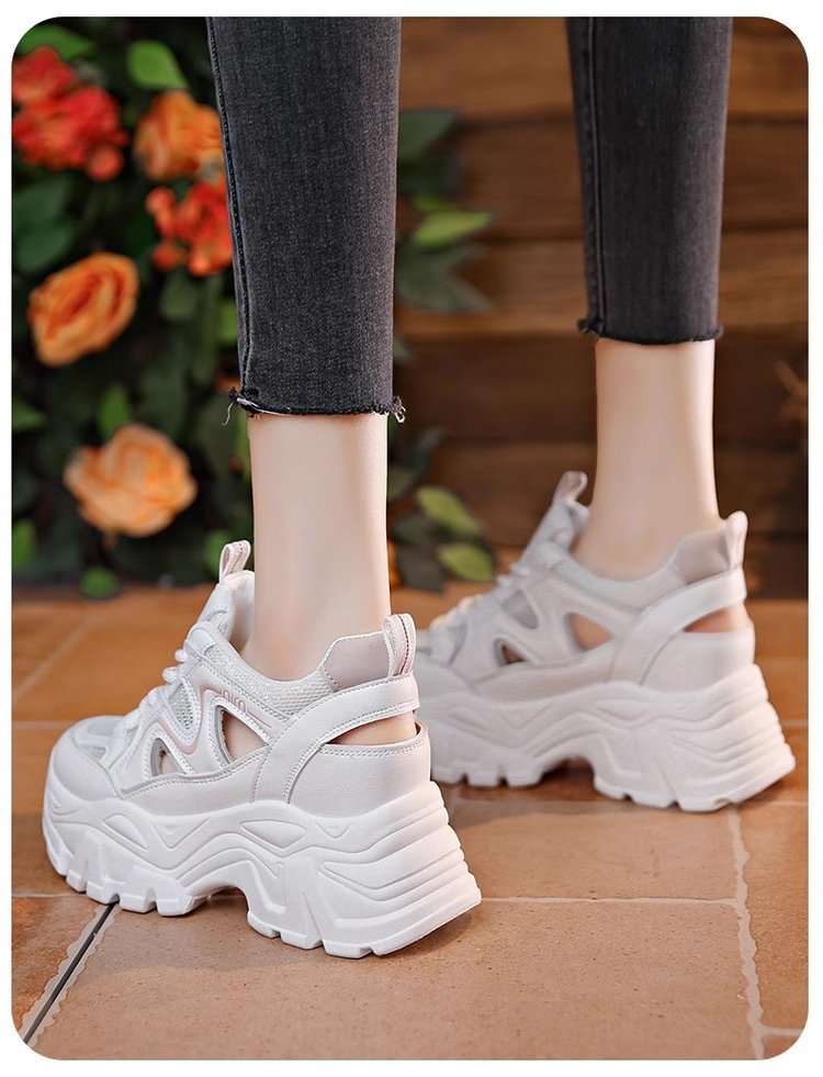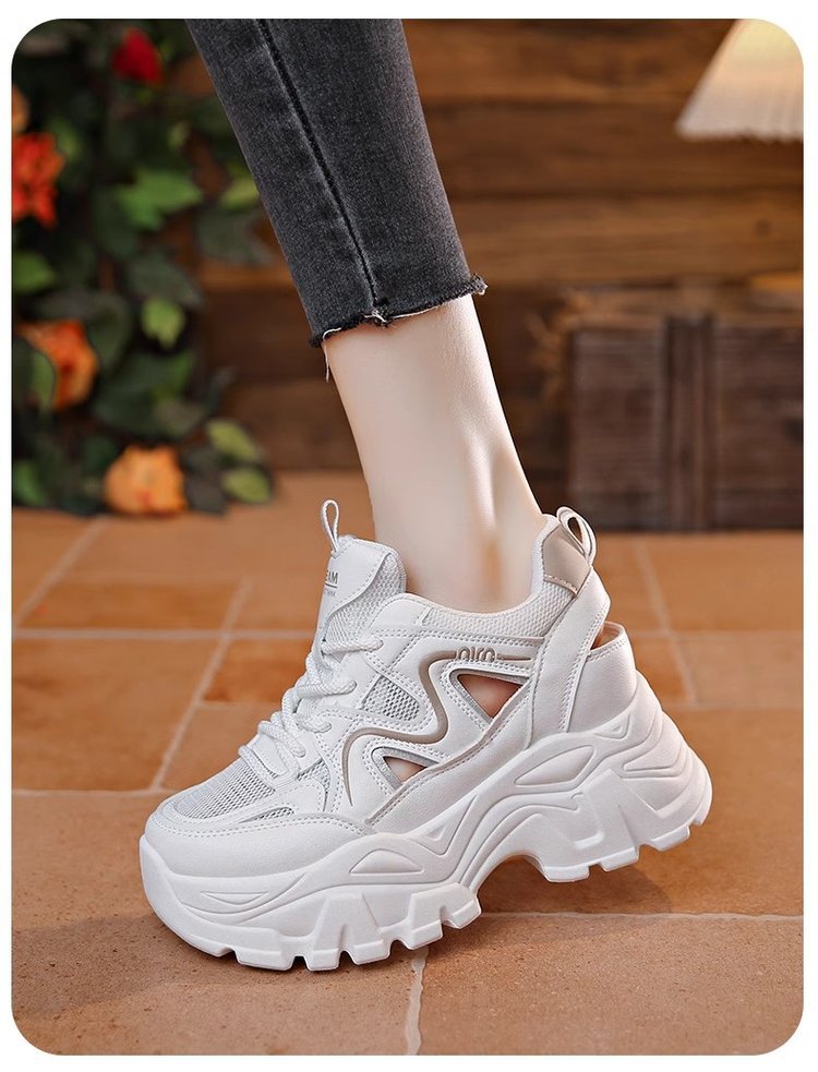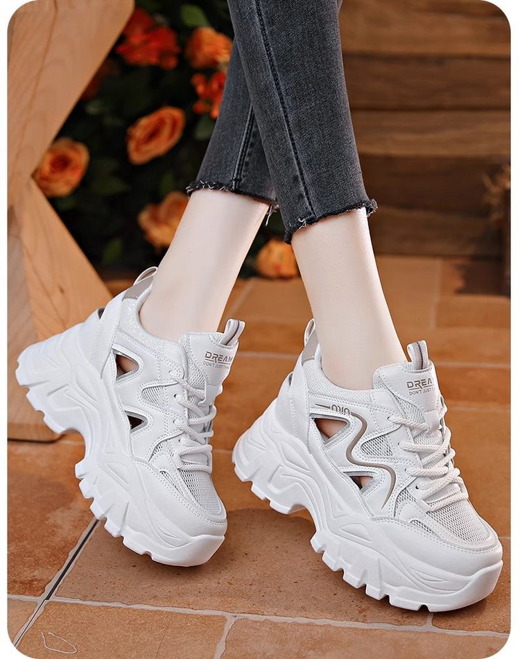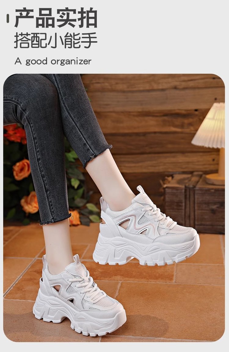 메쉬 내부 높이 증가 아빠 샌들 여성의 통기성 2025 여름 새로운 두꺼운 바닥 빈 캐주얼 화이트 슈즈 운동화