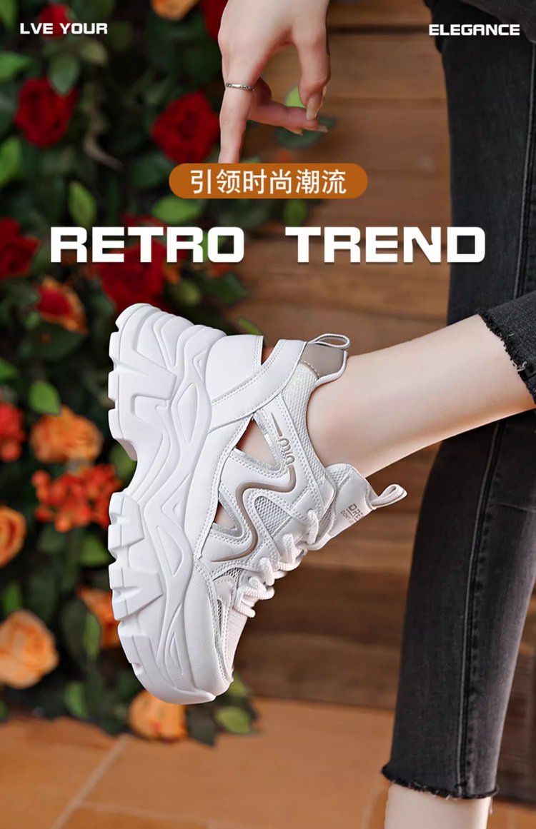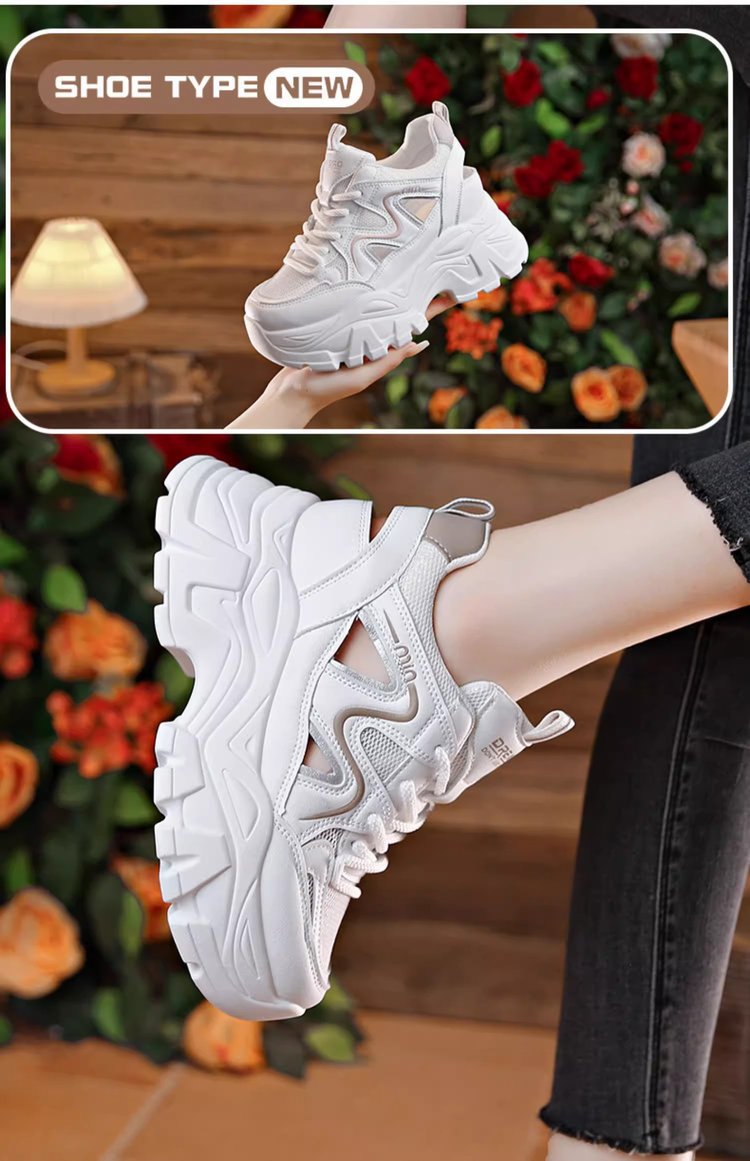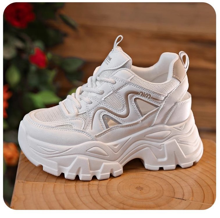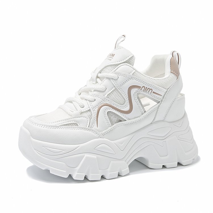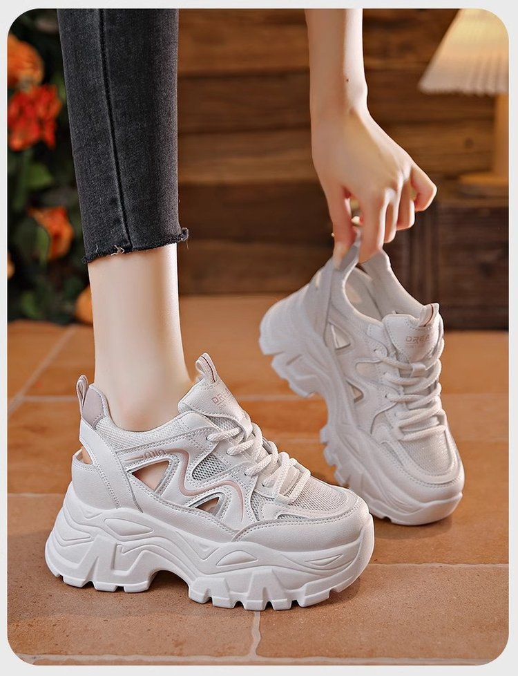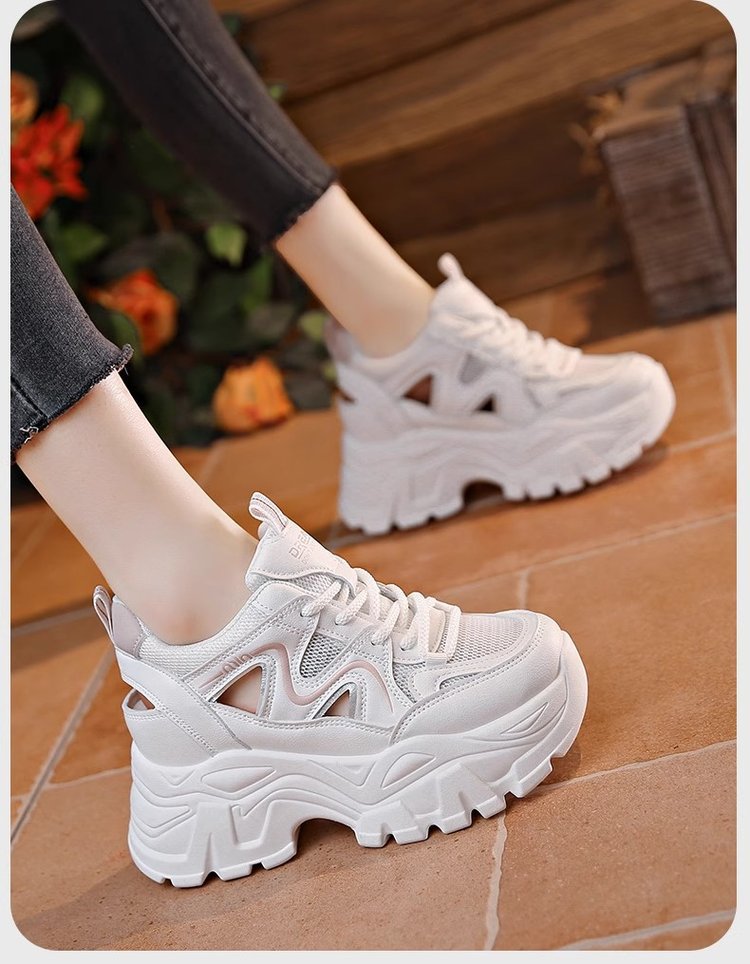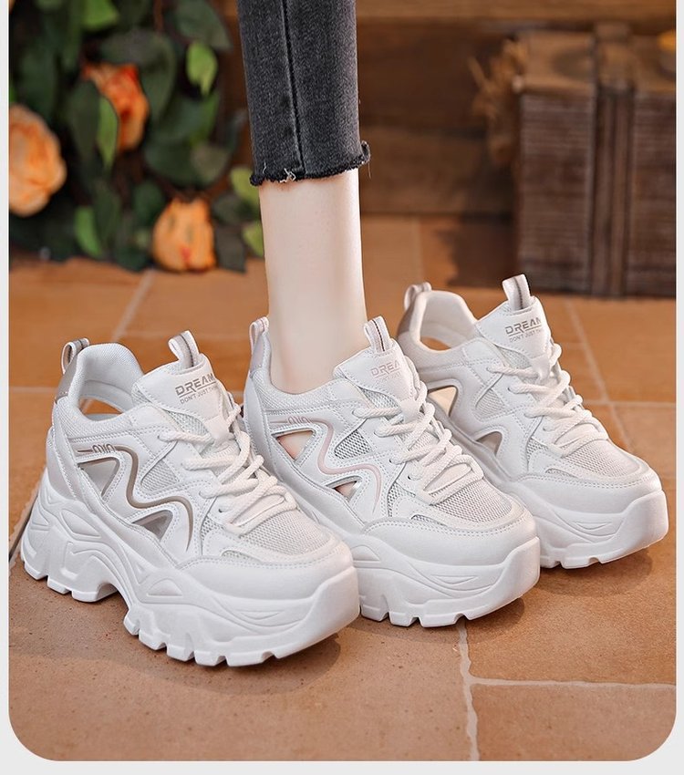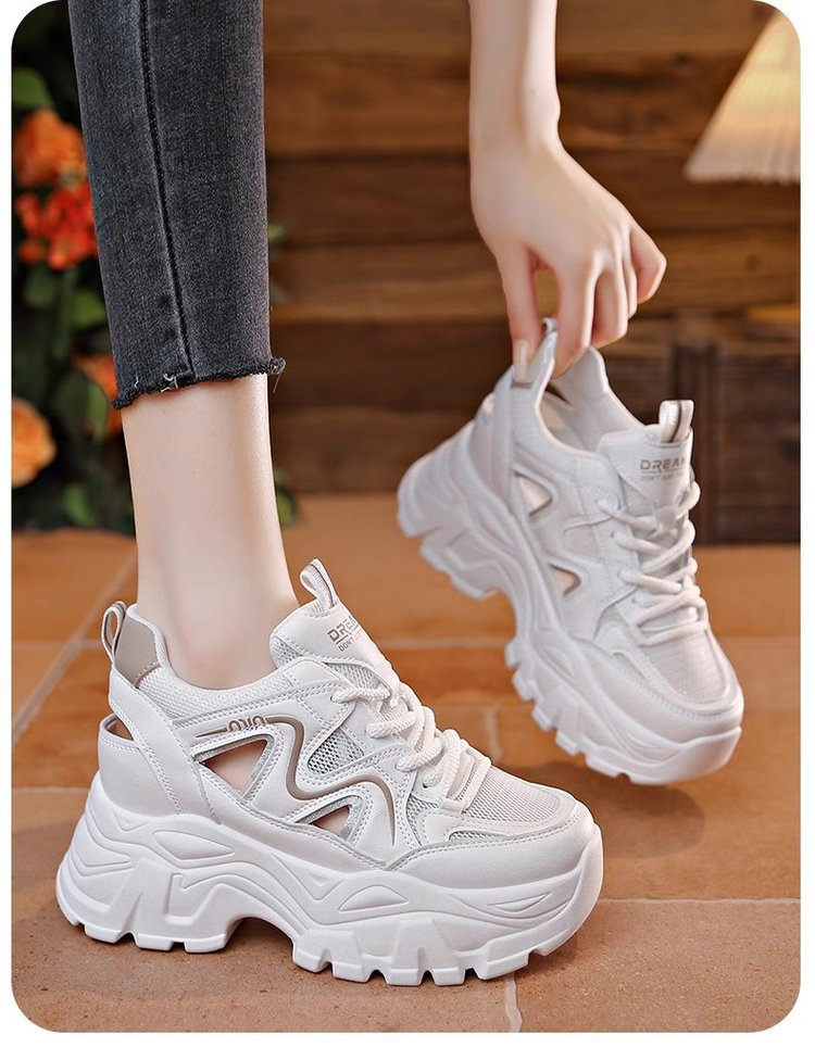 메쉬 내부 높이 증가 아빠 샌들 여성의 통기성 2025 여름 새로운 두꺼운 바닥 빈 캐주얼 화이트 슈즈 운동화