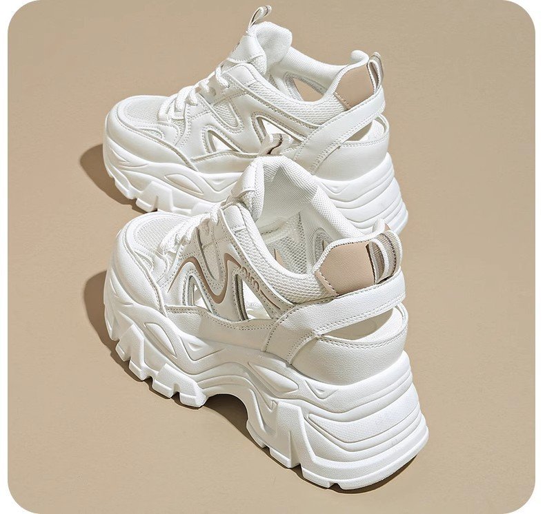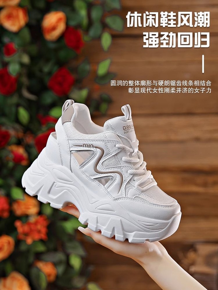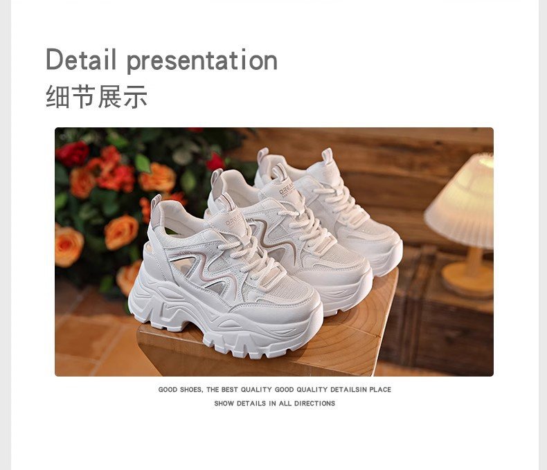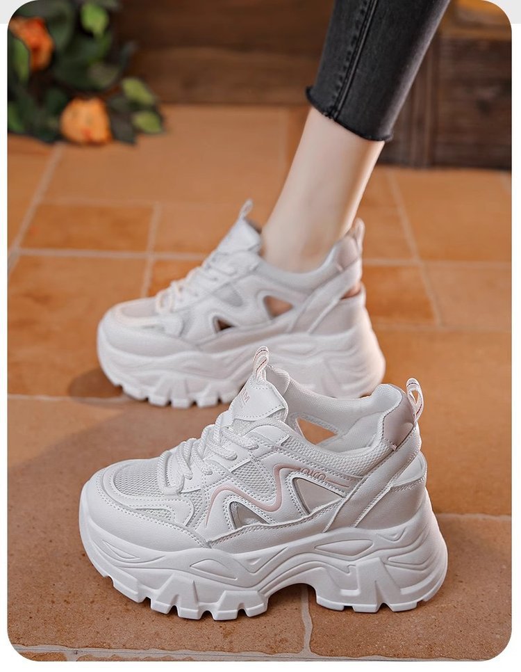 메쉬 내부 높이 증가 아빠 샌들 여성의 통기성 2025 여름 새로운 두꺼운 바닥 빈 캐주얼 화이트 슈즈 운동화스토어 가기