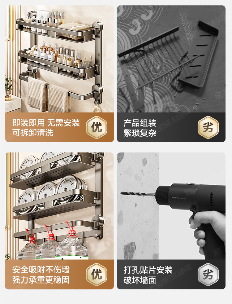 화장실 흡입 컵 보관 랙 화장실 샤워 룸 욕실 용품 벽걸이 형 구멍없는 벽걸이 형 보관 선반