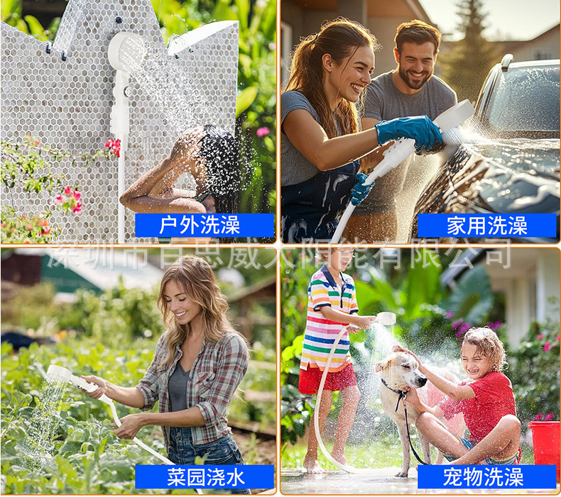 야외용 간편 샤워기, 휴대용 전기 샤워기, 수온 표시 기능, 임대주택 및 여행용 충전식 샤워기