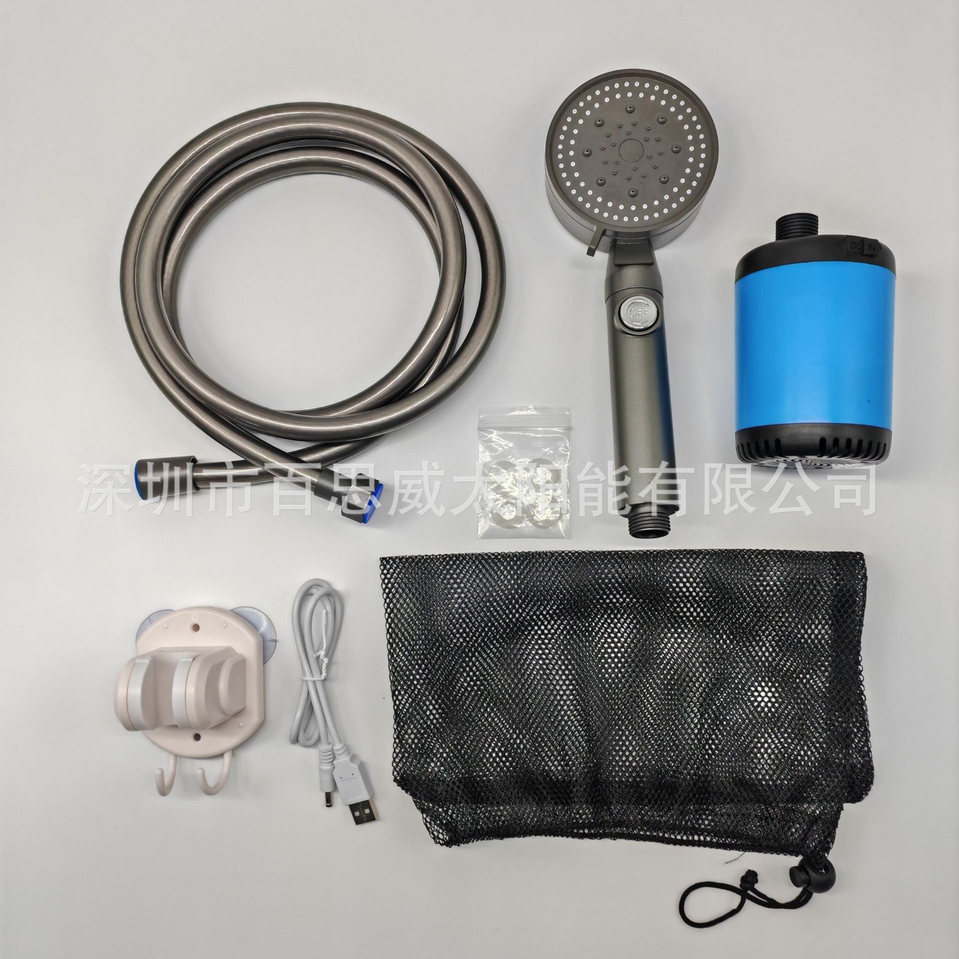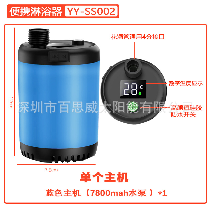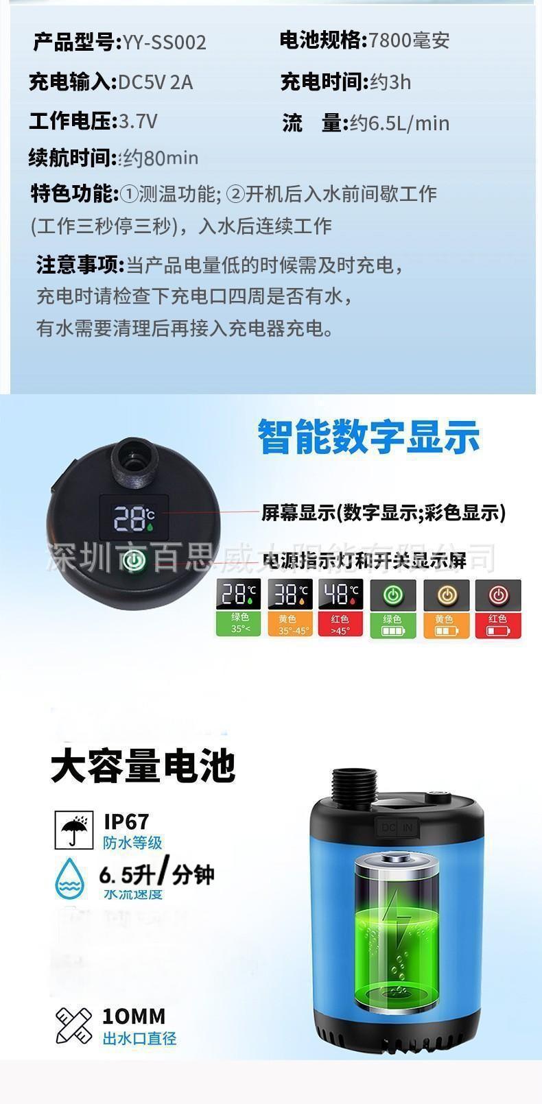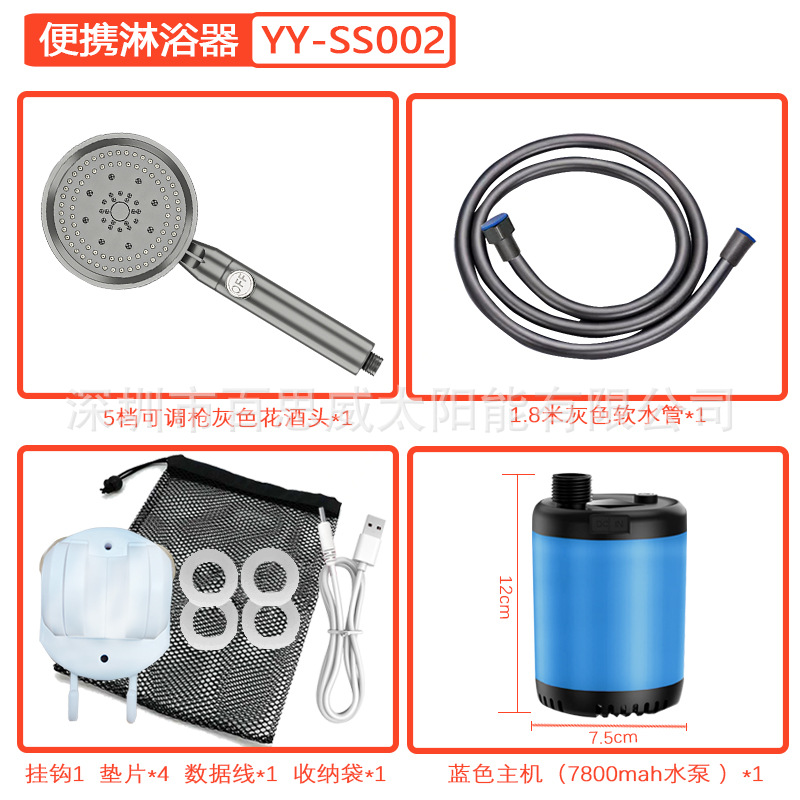 注意:淋浴器套装为纸盒装,单水泵+充电线无包装盒及说明书