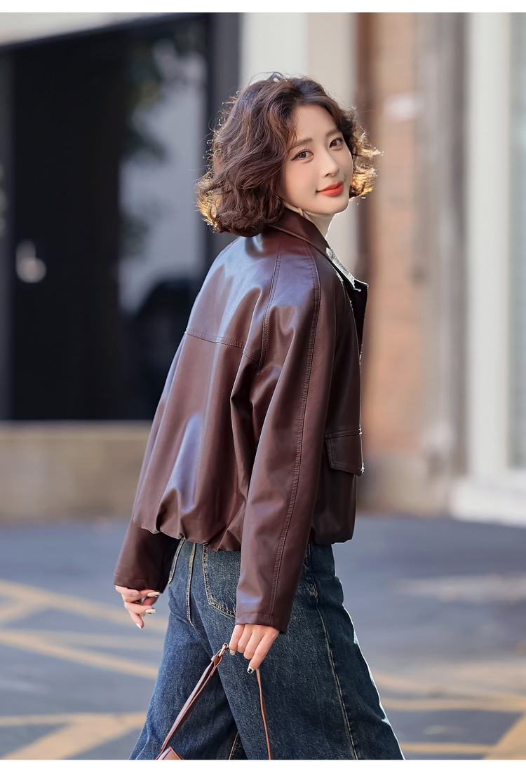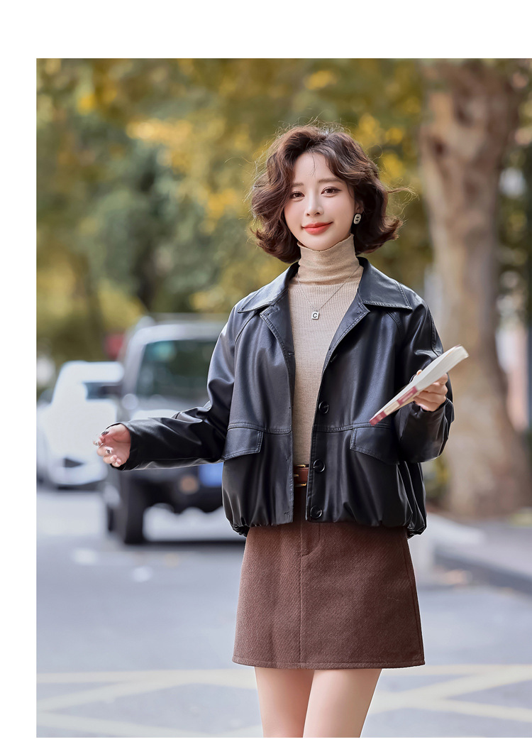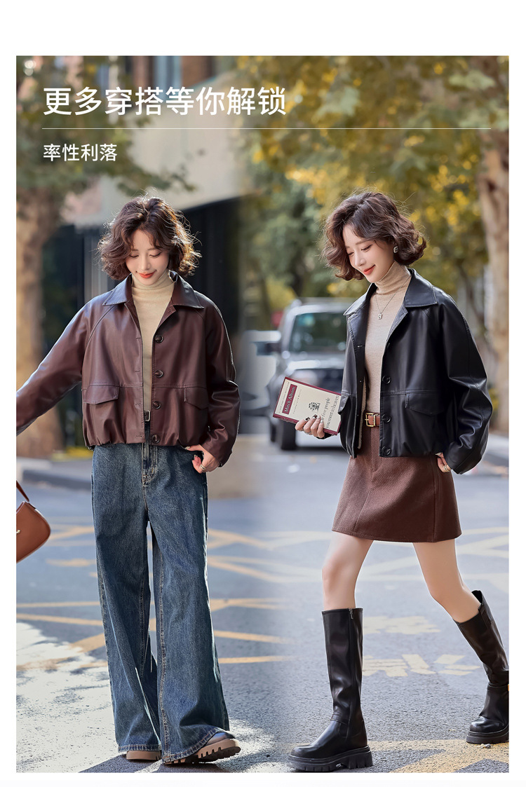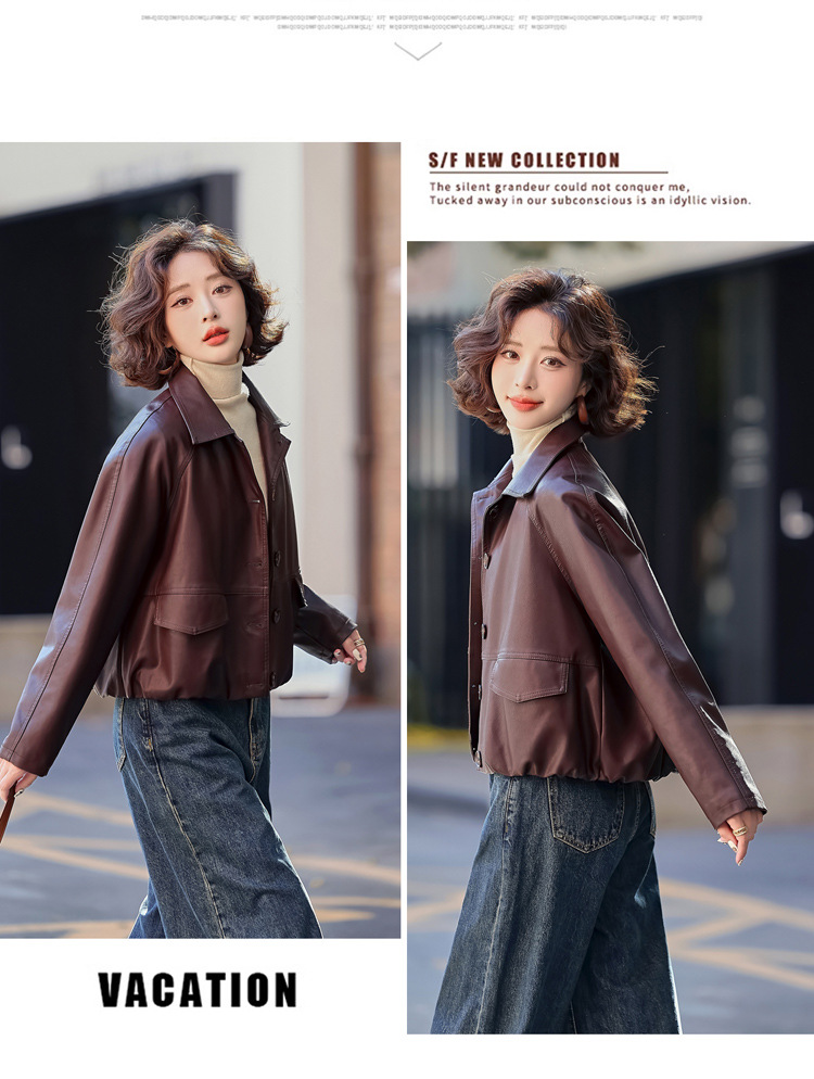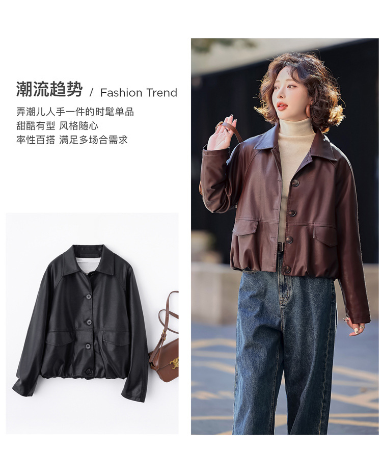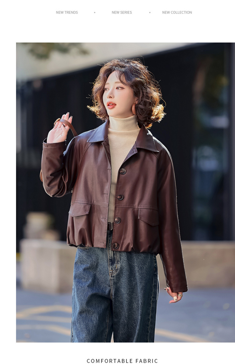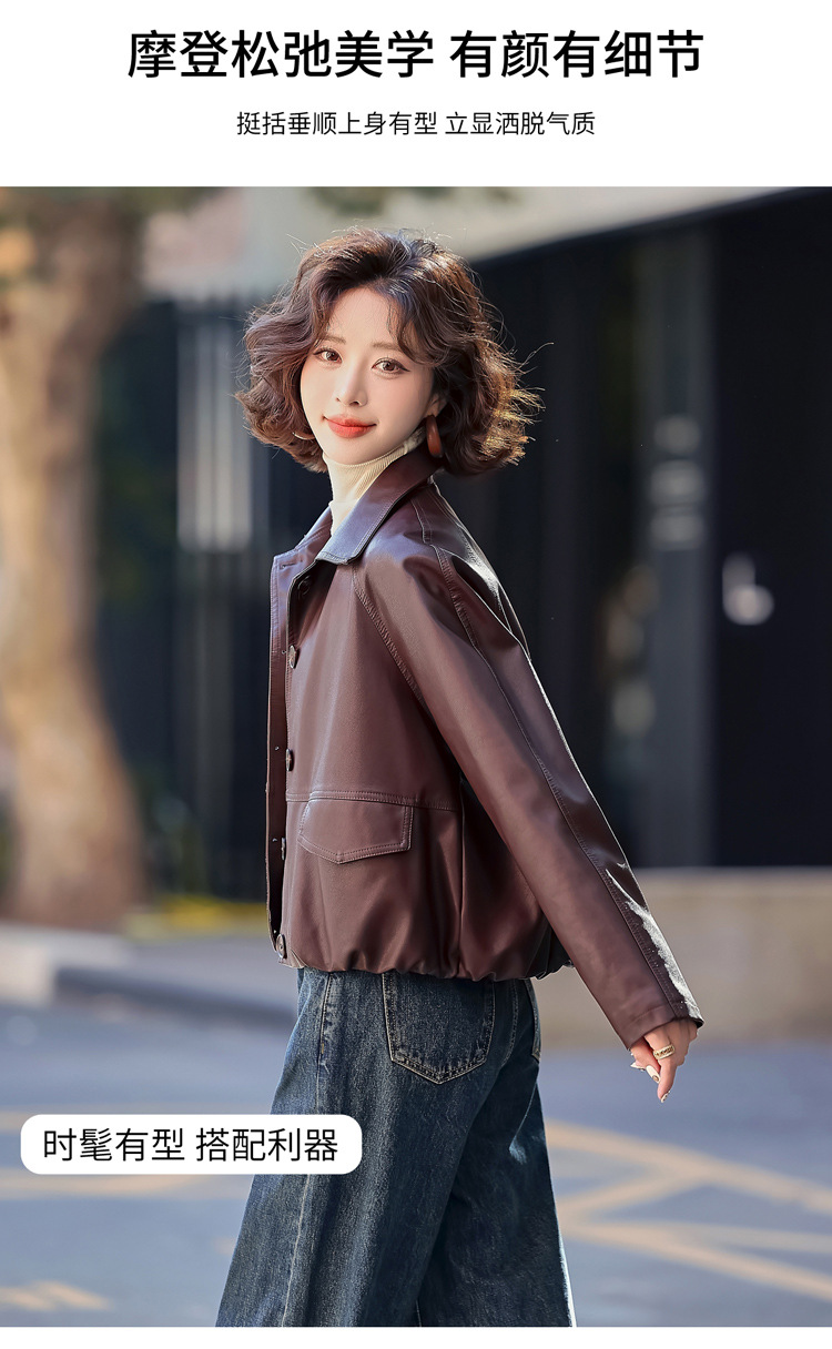 Pu 가죽 코트 여성 짧은 2025 봄 새로운 스타일 작은 디자인 캐주얼 재킷 탑 YG82937스토어 가기