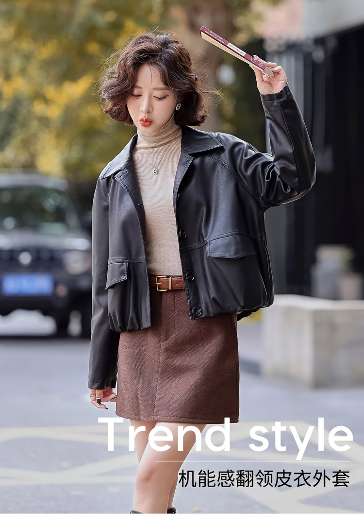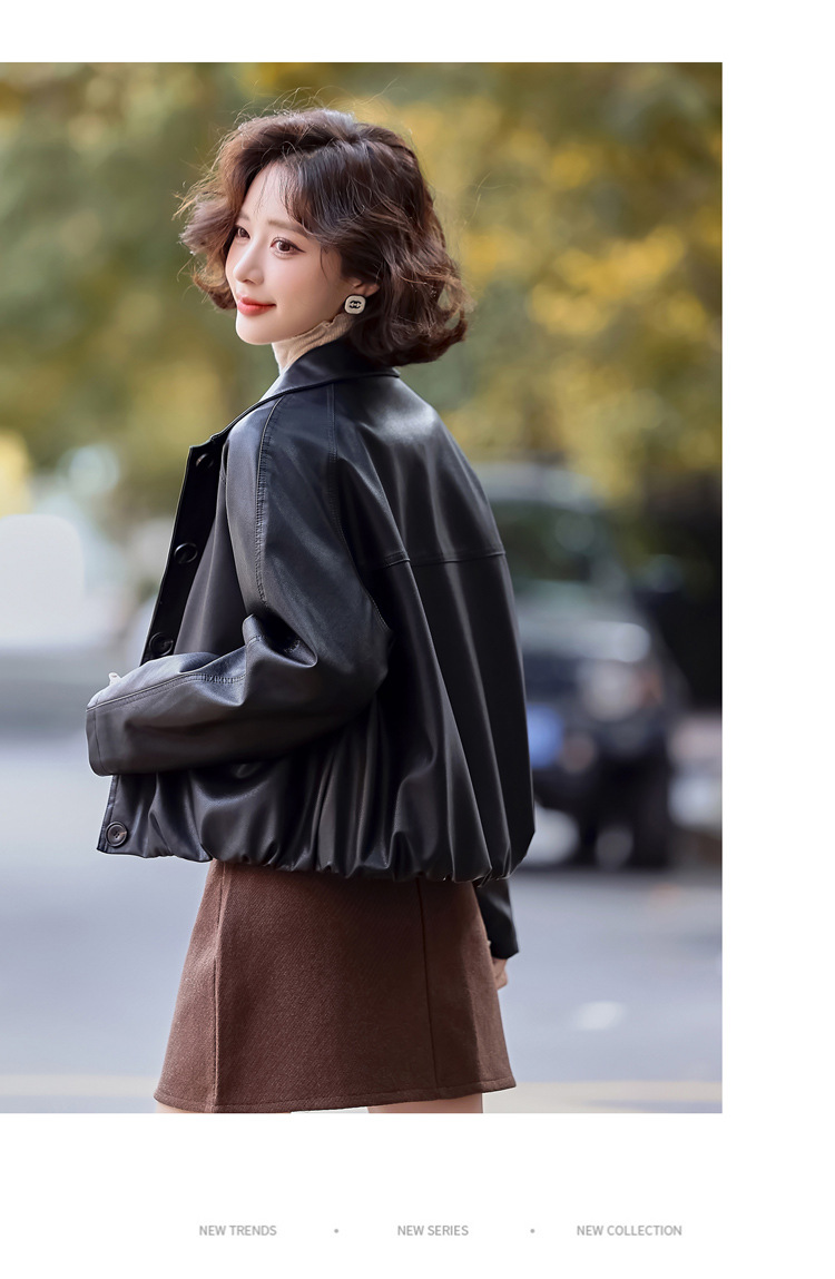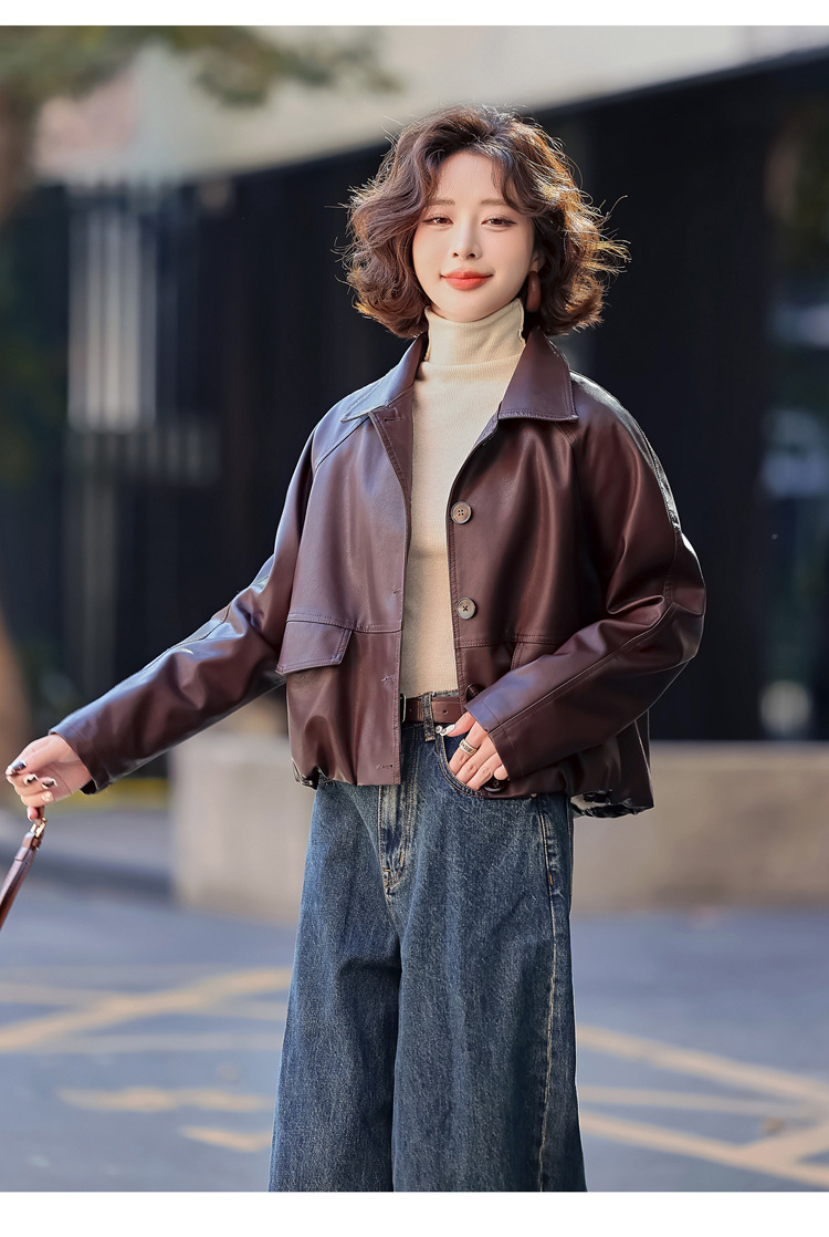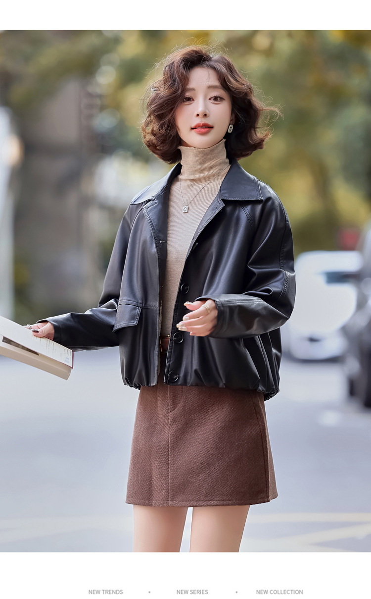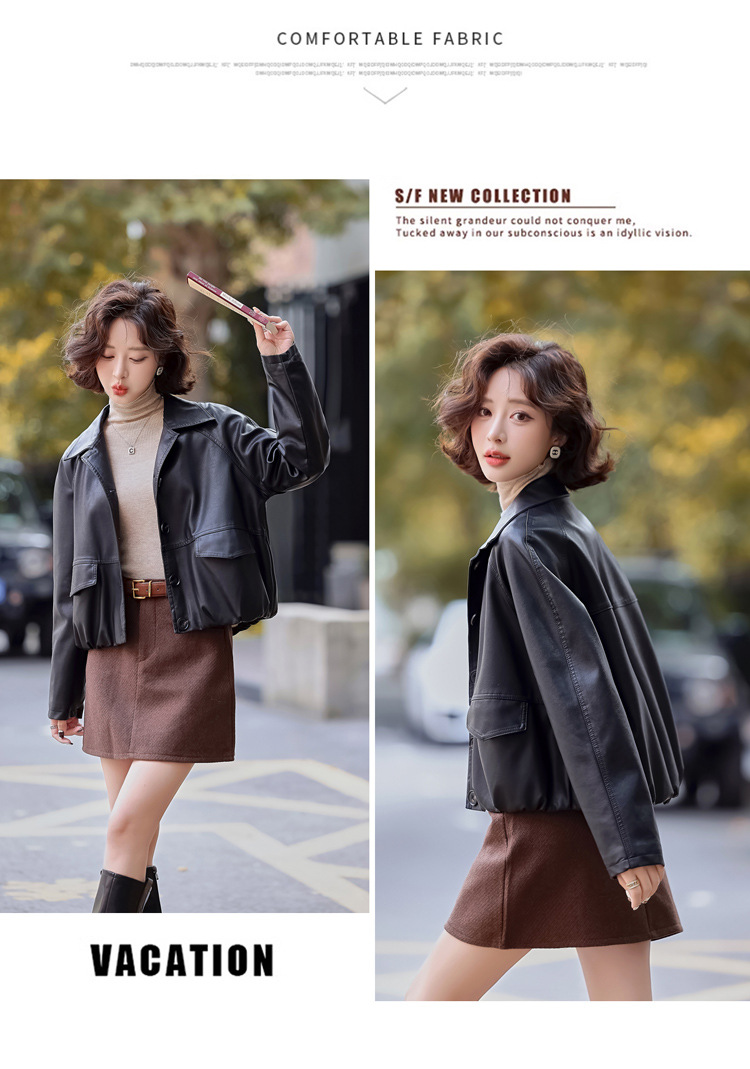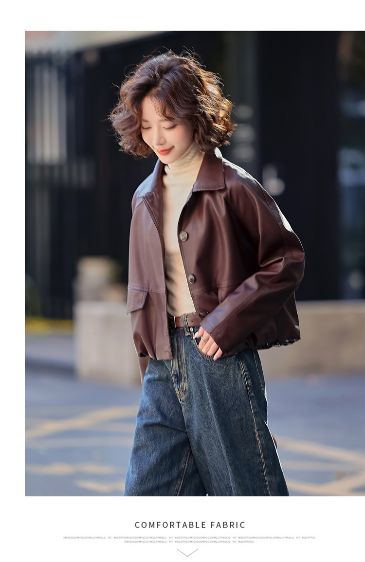Pu 가죽 코트 여성 짧은 2025 봄 새로운 스타일 작은 디자인 캐주얼 재킷 탑 YG82937스토어 가기