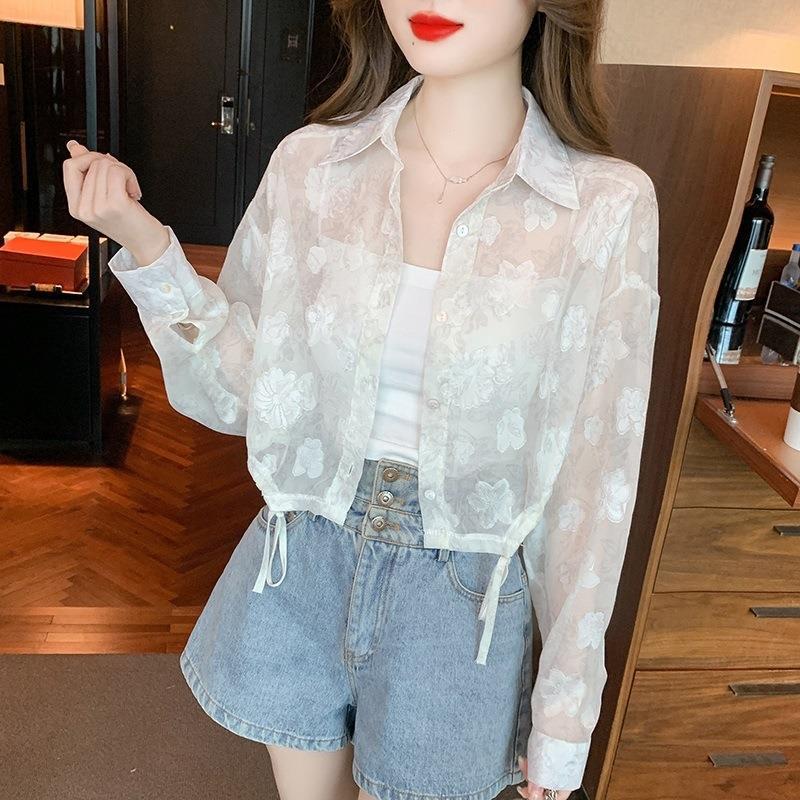신선하고 달콤한 꽃 쉬폰 셔츠 선스크린 의류 여성 여름 긴팔 얇은 카디건 탑 짧은 재킷
