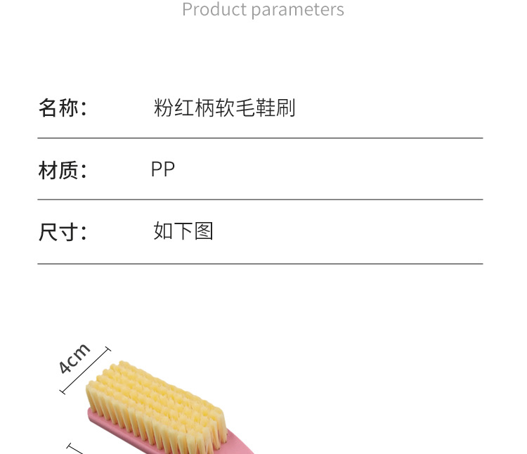 • 분홍색 플라스틱 손잡이 부드러운 강모 구두솔(노란색 실크)