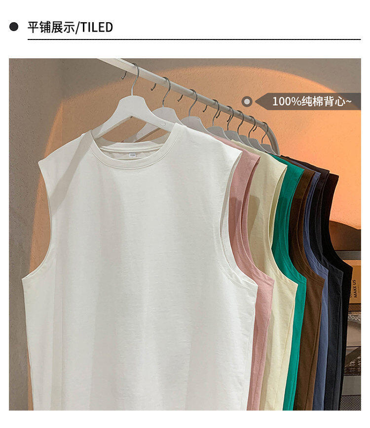 여름 솔리드 컬러 조끼 민소매 티셔츠 국경 대외 무역 유럽과 미국 남성 느슨한 풀오버 남성용 대형 조끼 탑스토어 가기