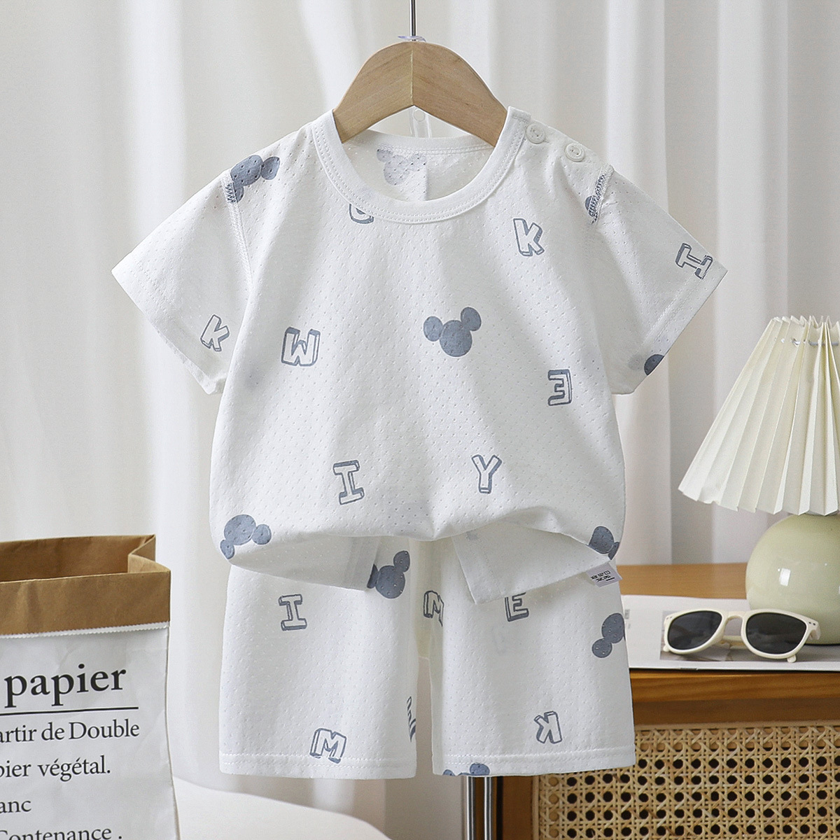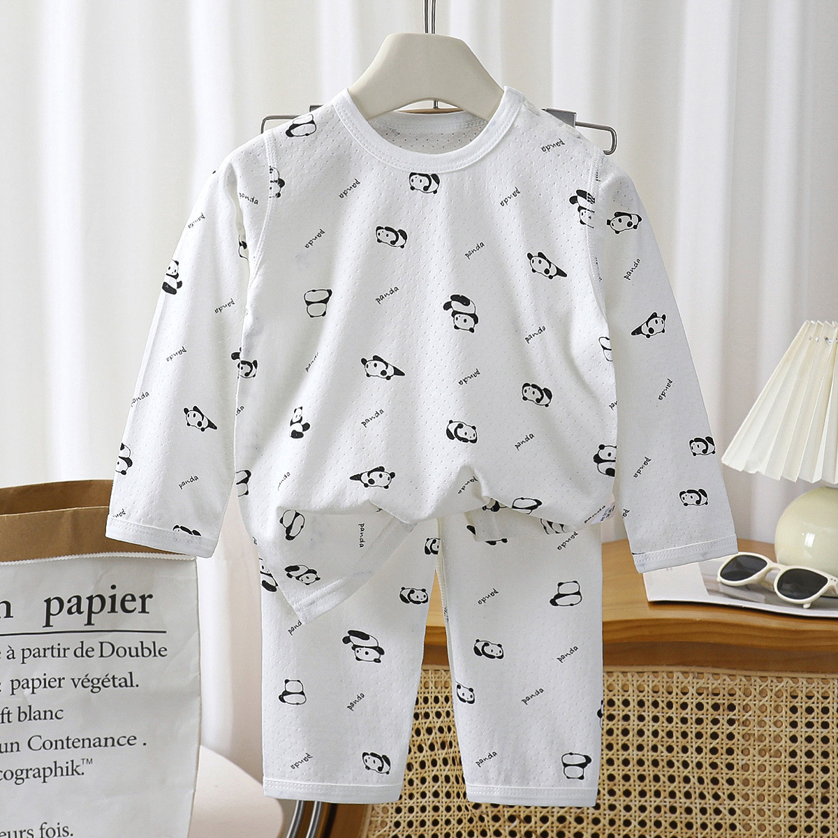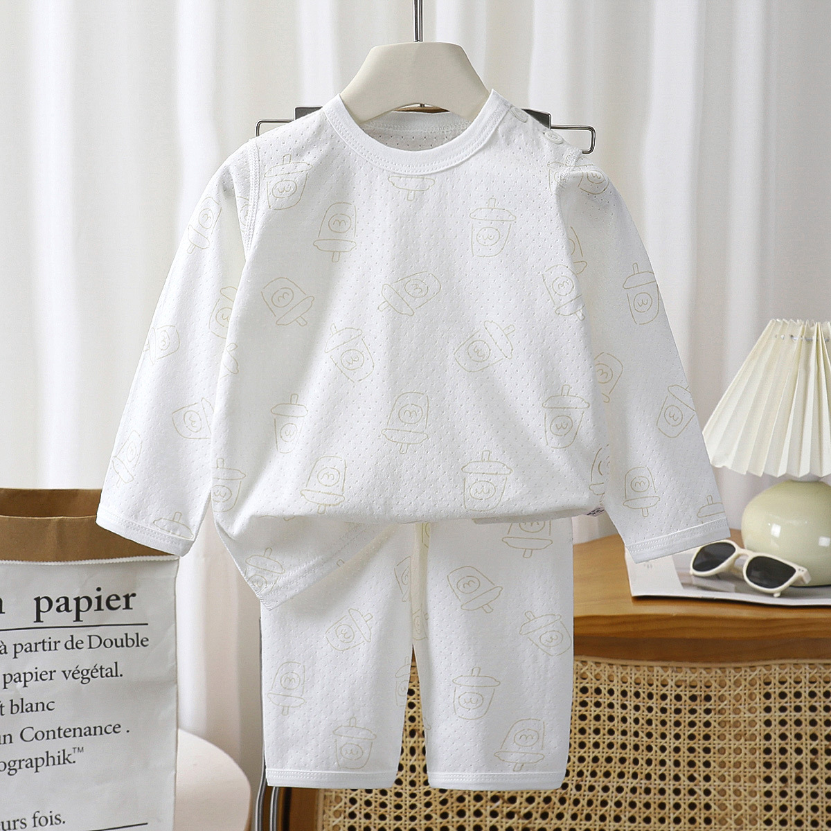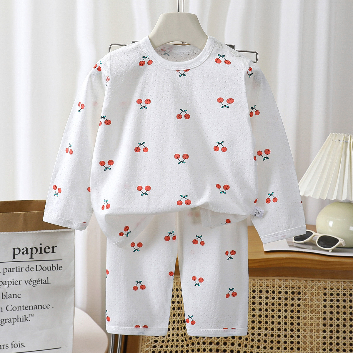 어린이 여름 얇은 긴 소매 뼈없는 홈 옷 아기 잠옷 에어컨 의류 소년 소녀 캐주얼 세트스토어 가기