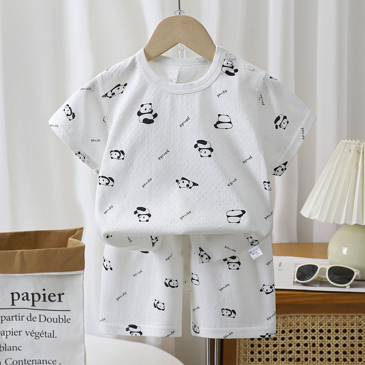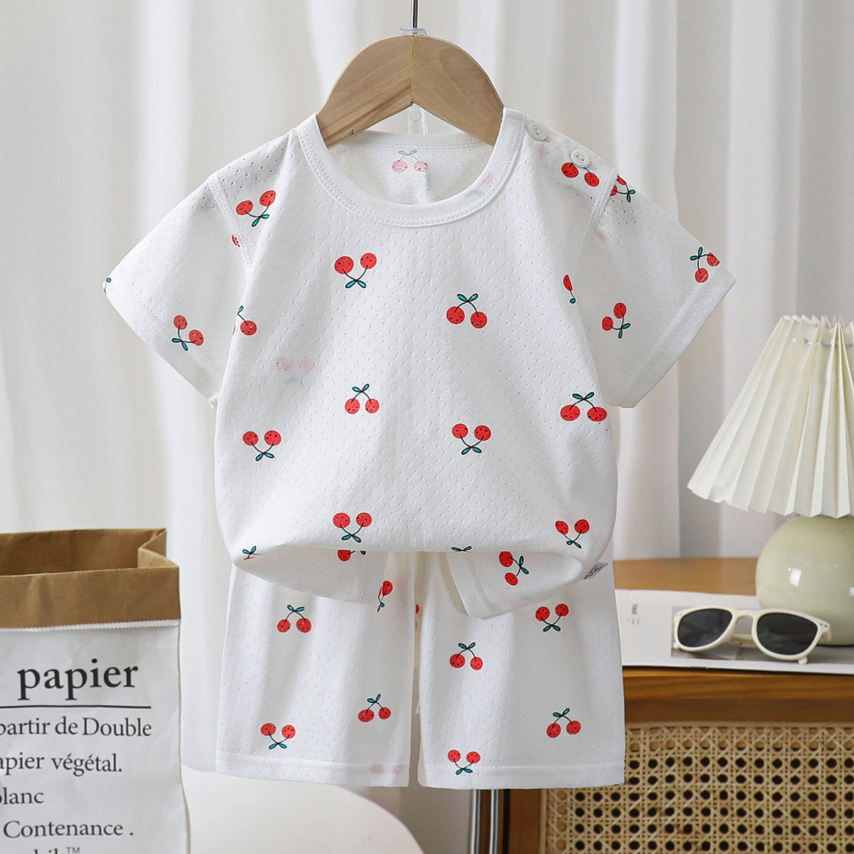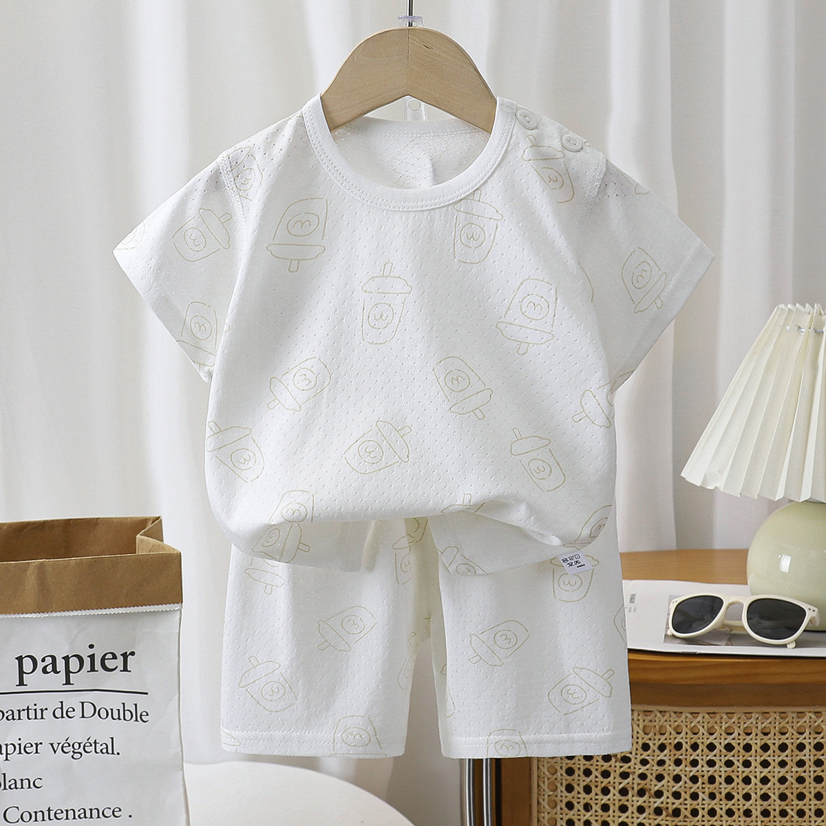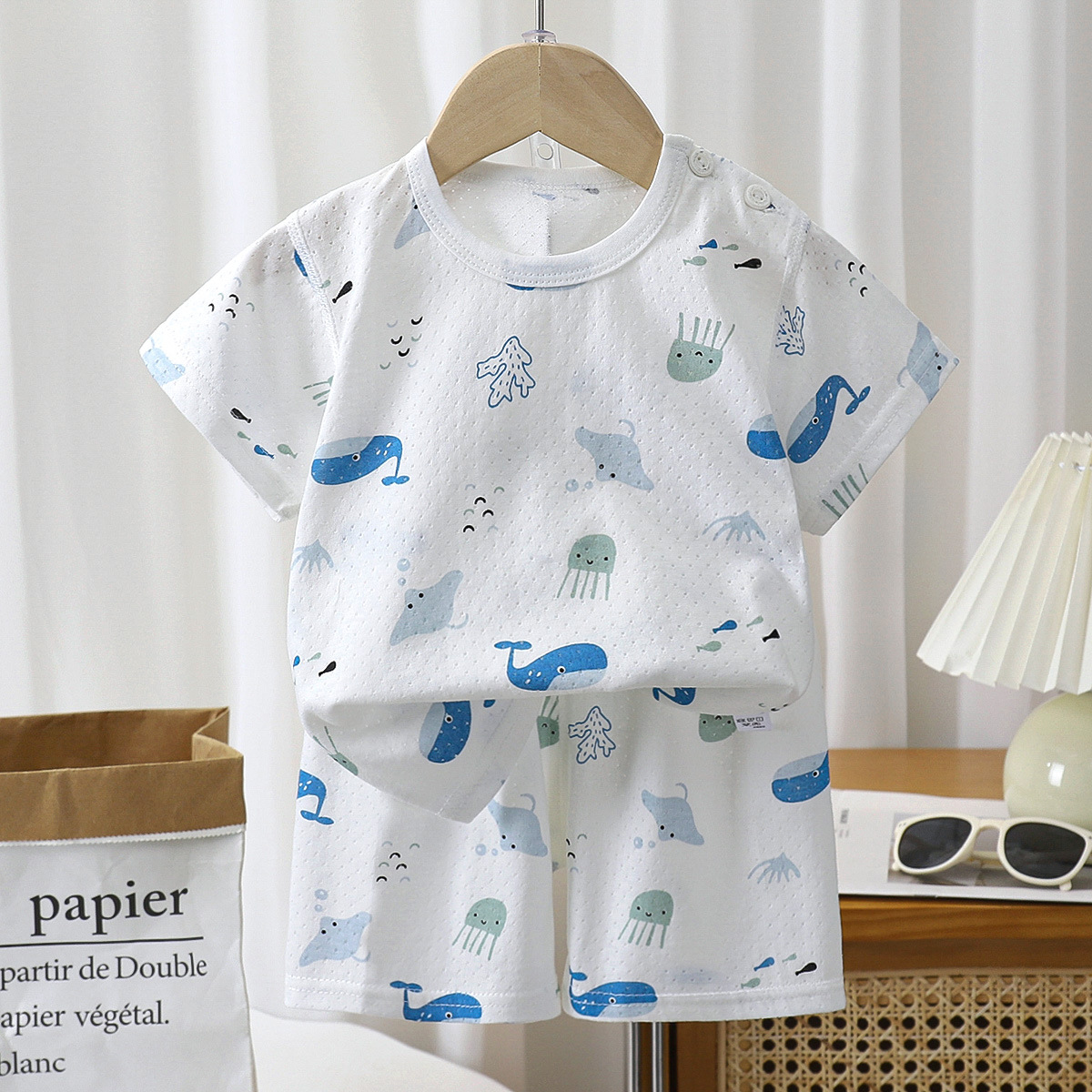 어린이 여름 얇은 긴 소매 뼈없는 홈 옷 아기 잠옷 에어컨 의류 소년 소녀 캐주얼 세트스토어 가기