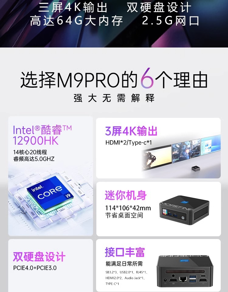 Morefine Mo Fang i9-12900hk 미니 호스트 13 세대 i7-13620H 오피스 홈 컴퓨터스토어 가기