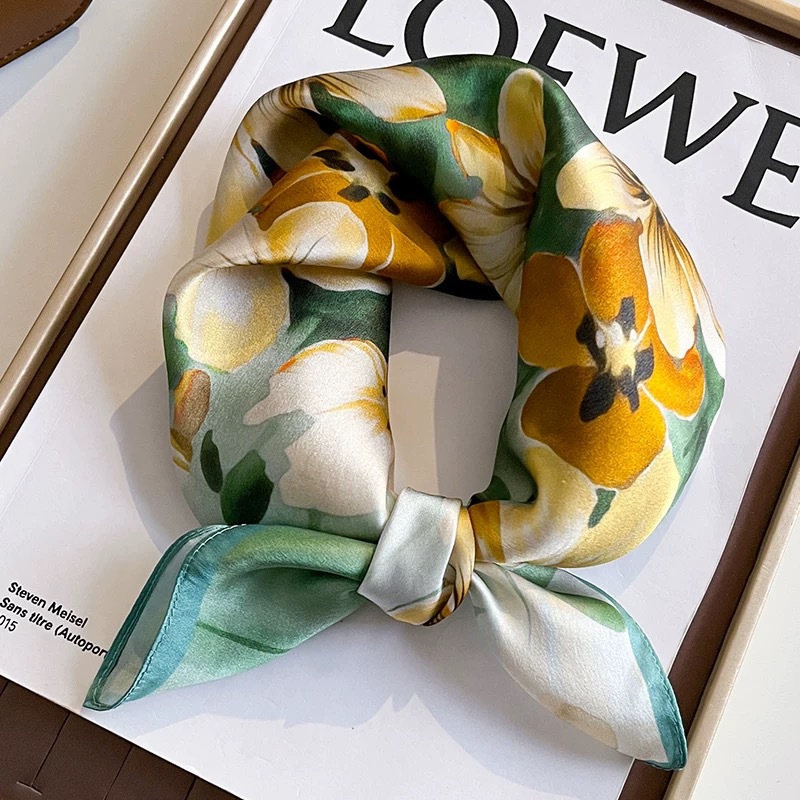 새로운 중국 스타일 고급 감각 실크 작은 광장 스카프 여성 봄과 가을 선물 어머니 스카프 100% 뽕나무 실크 스카프