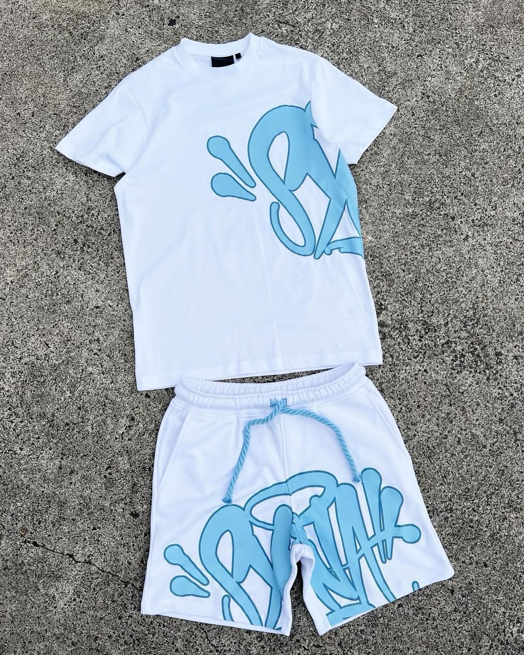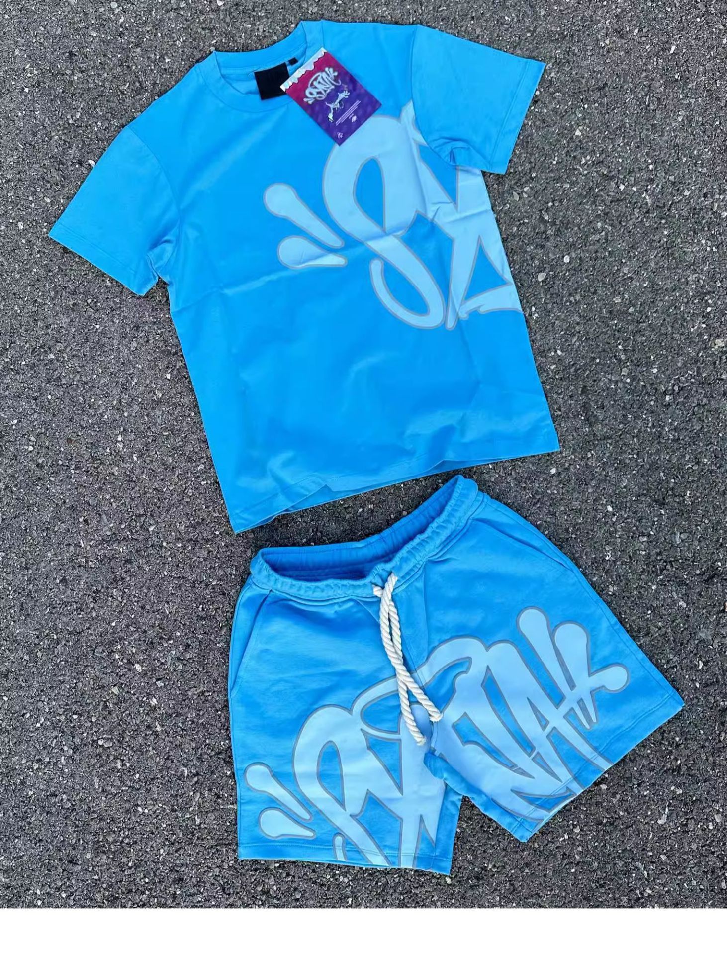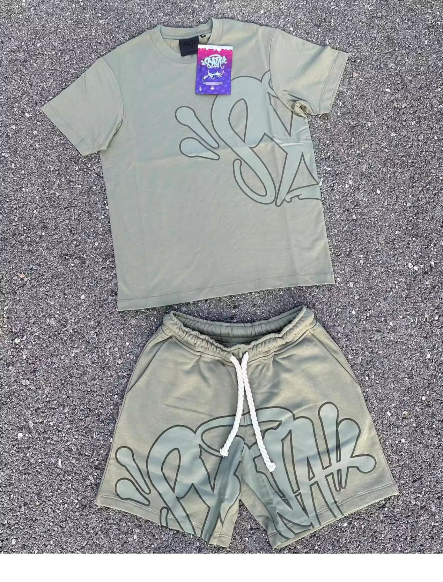 시나 월드 드릴 스타일 미국 힙합 프린트 반팔 티셔츠 반바지 남성 여름 패션 브랜드 캐주얼 스포츠 세트