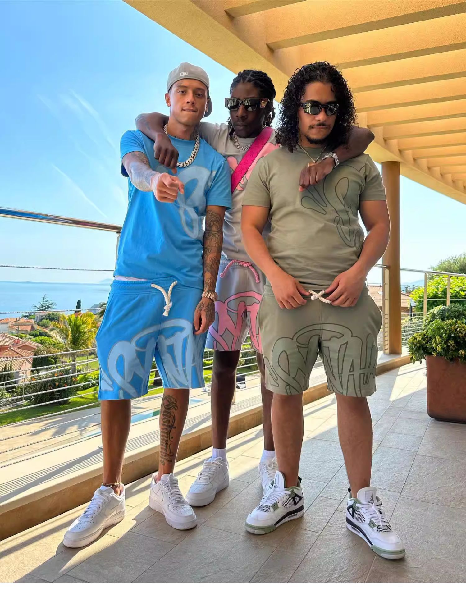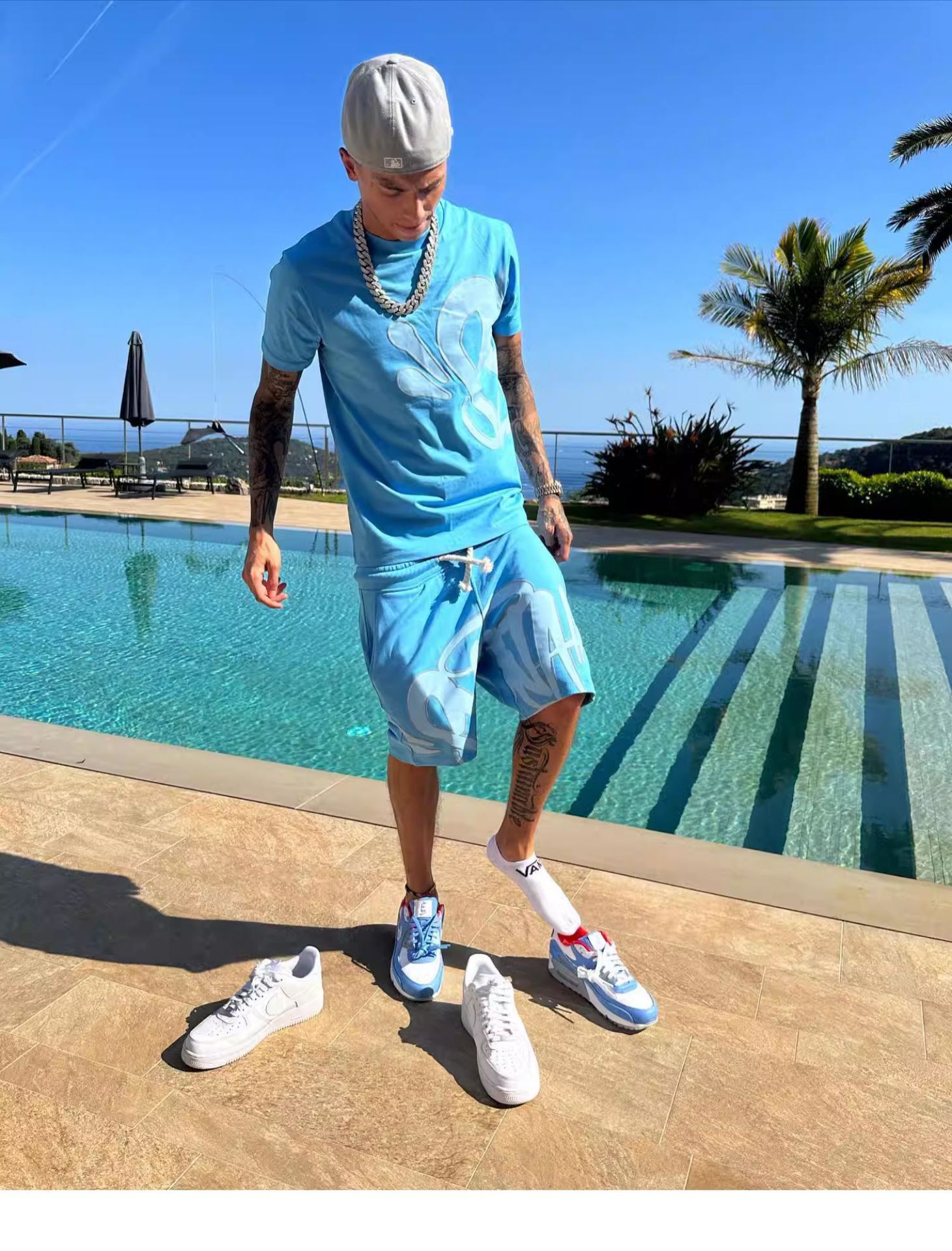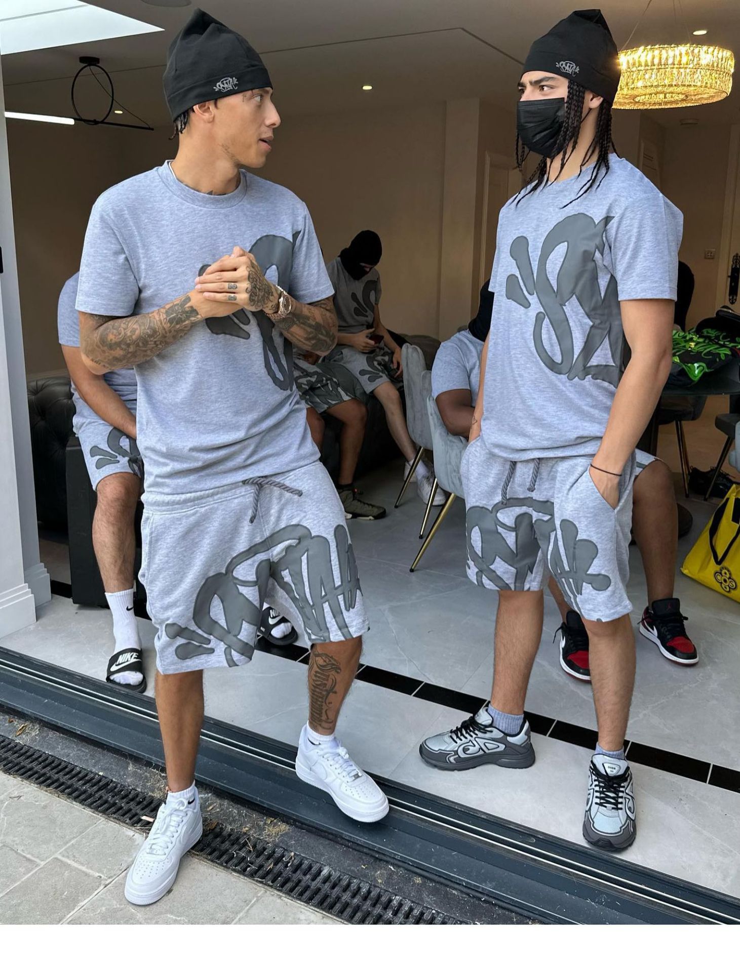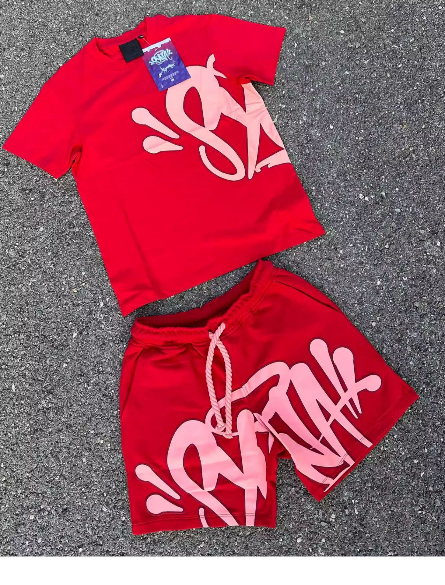 시나 월드 드릴 스타일 미국 힙합 프린트 반팔 티셔츠 반바지 남성 여름 패션 브랜드 캐주얼 스포츠 세트