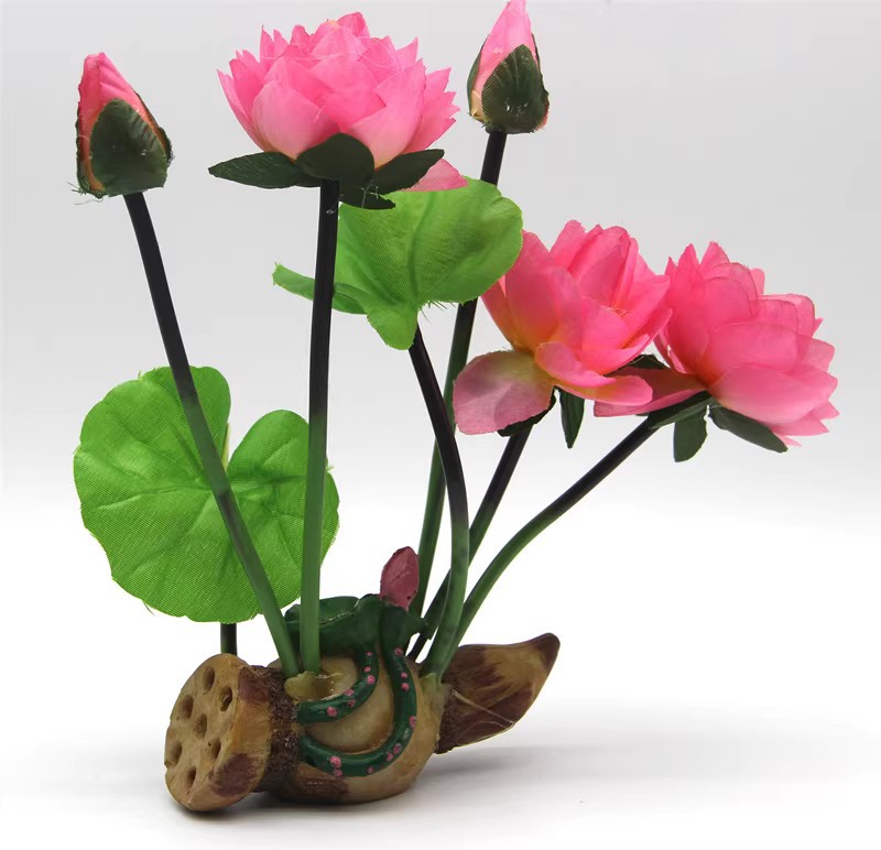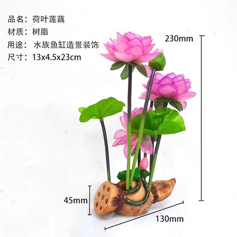 물고기 탱크 풍경 수지 연꽃 뿌리 풍경 장식 시뮬레이션 장식 물 잔디 연꽃 뿌리 실크 천 연꽃 물 탱크스토어 가기