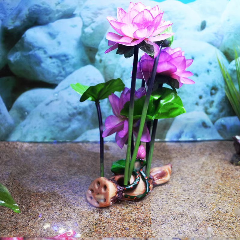 물고기 탱크 풍경 수지 연꽃 뿌리 풍경 장식 시뮬레이션 장식 물 잔디 연꽃 뿌리 실크 천 연꽃 물 탱크