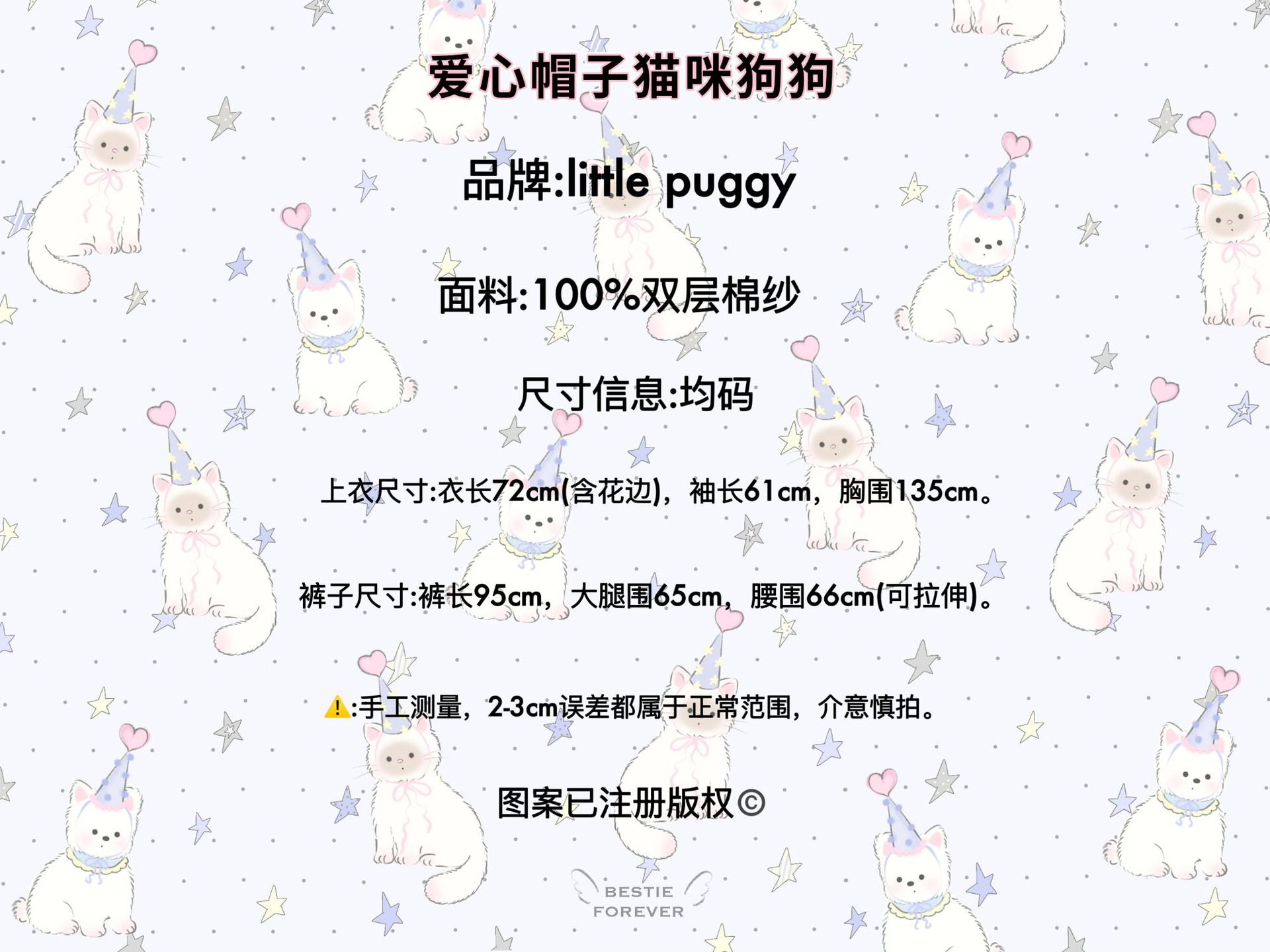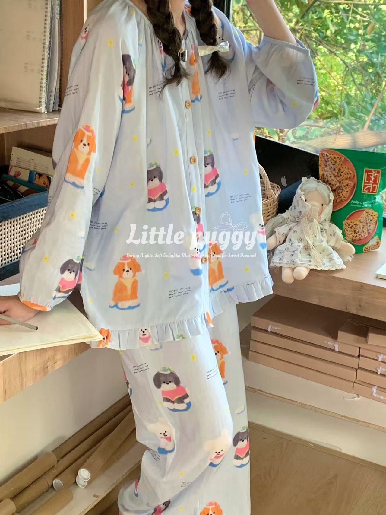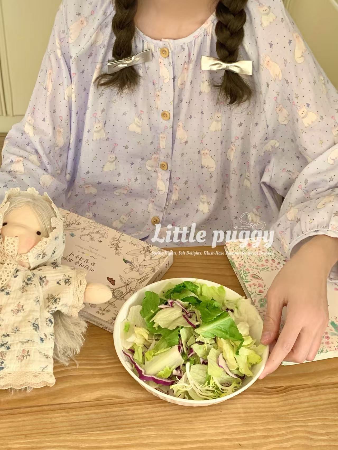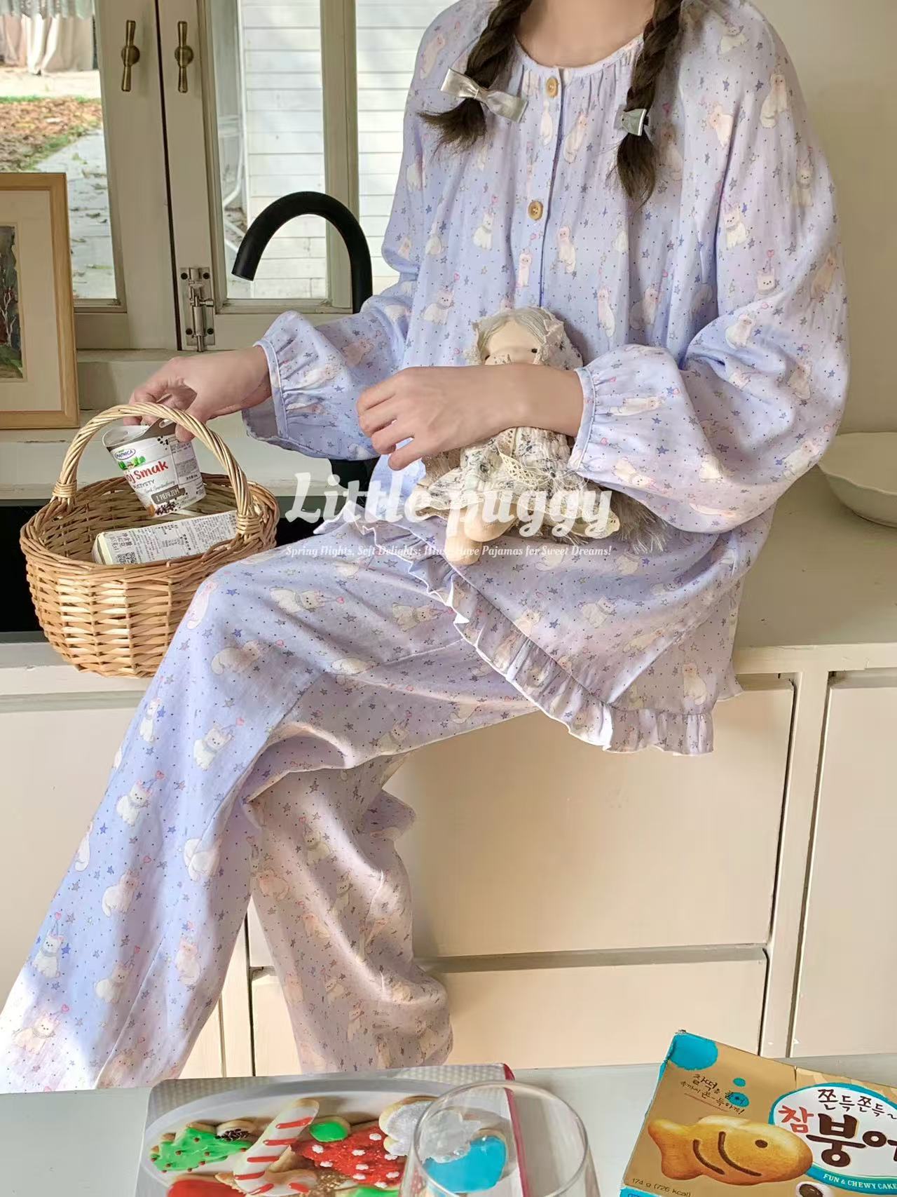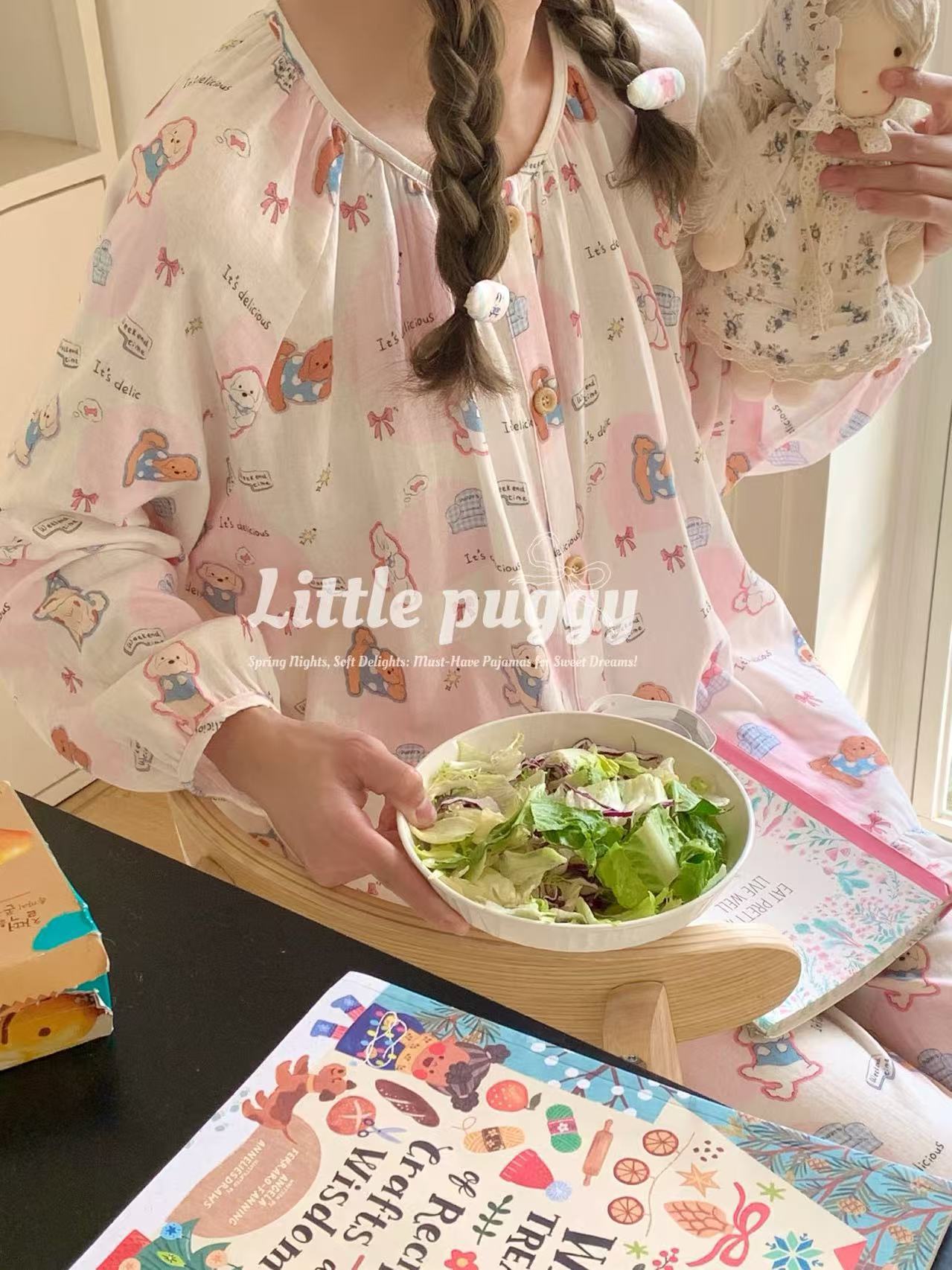 작은 puggy25 봄/여름 한국 스타일 더블 거즈 부드러운 고양이 잠옷