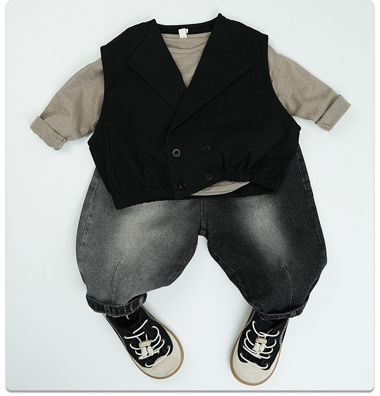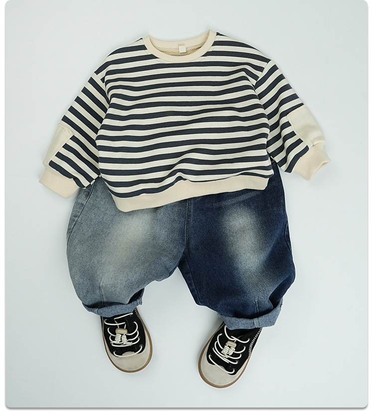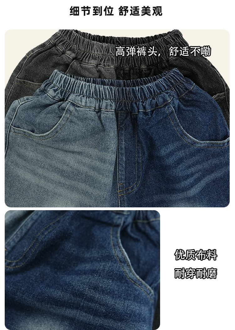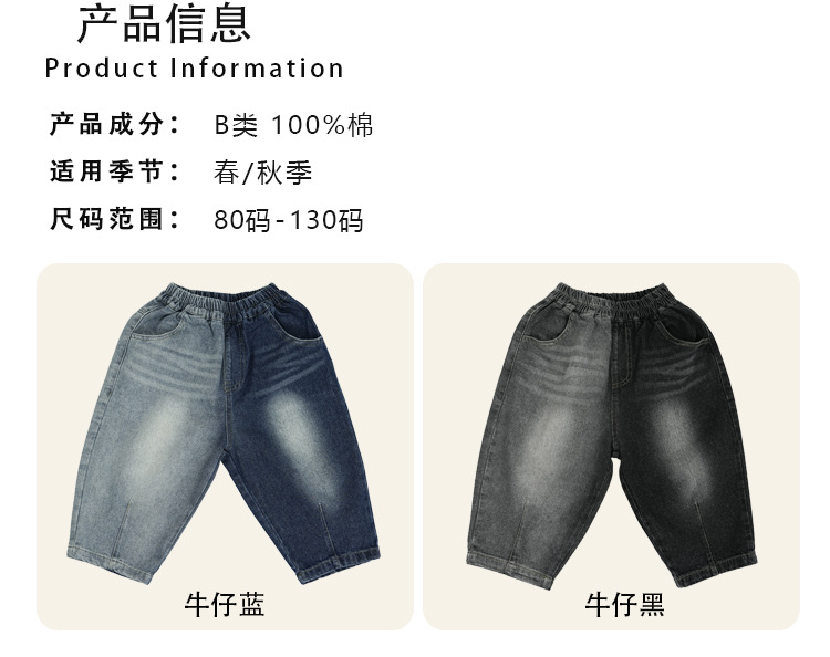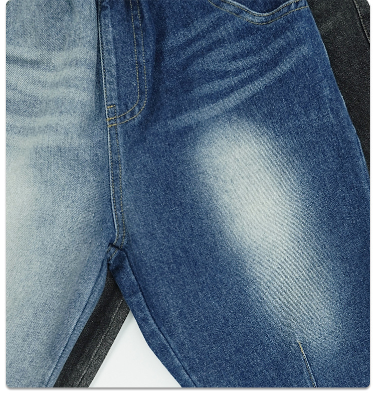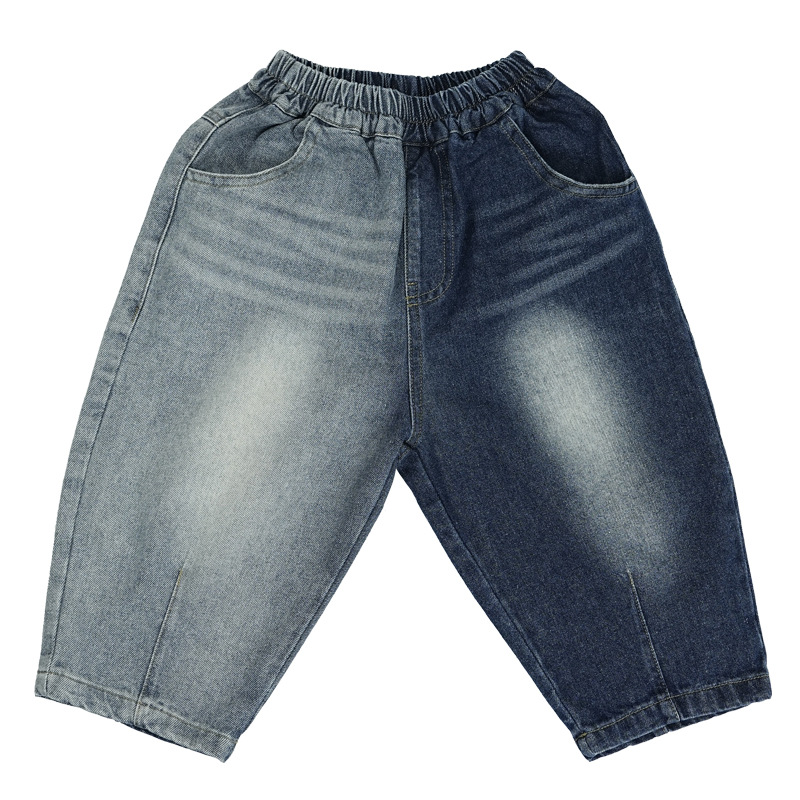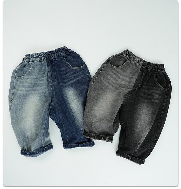 봄 새로운 빈티지 씻은 오래된 어린이 청바지 패션 문질러 흰색 AB 표면 깊이와 밝은 대비 색상 아기 소년과 소녀 바지스토어 가기