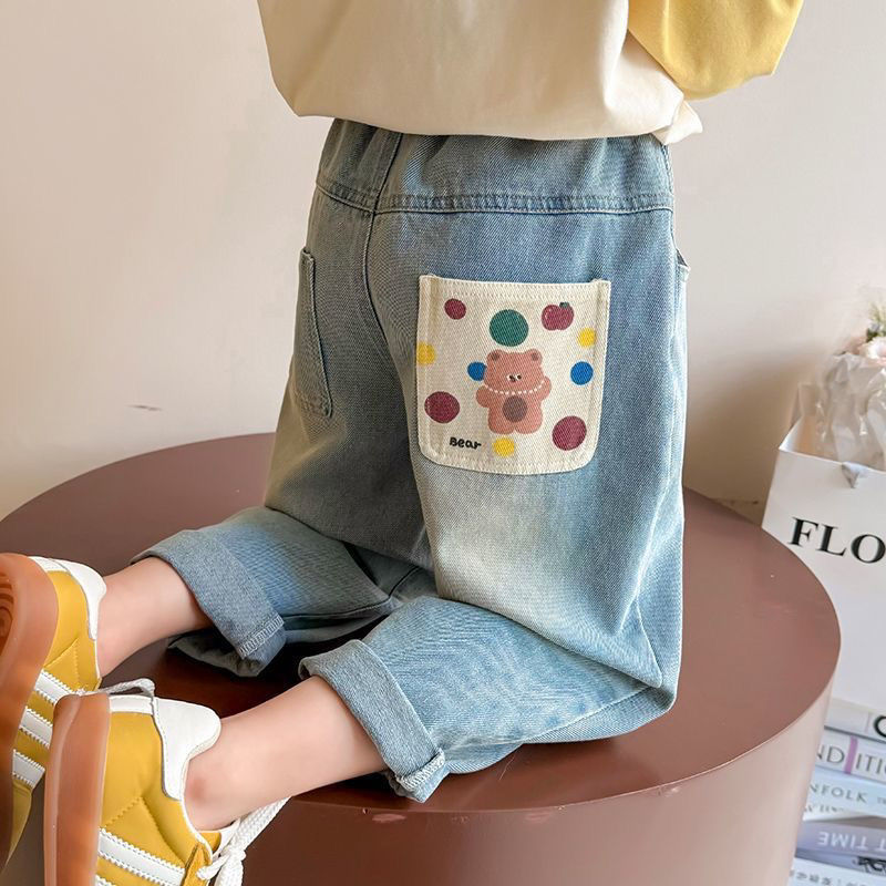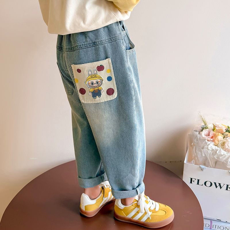 아동복 소녀 청바지 2025 봄과 가을 새로운 한국 스타일 서양식 대형 어린이 느슨한 바지 스트레이트 롱 바지스토어 가기