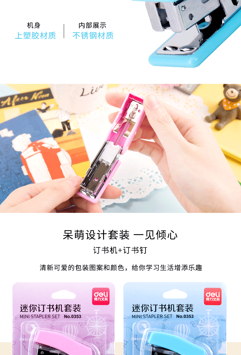 델리 0353 미니 스테이플러 세트 소형 학생용 어린이용 스테이플러 도매
