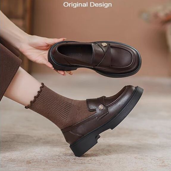 로퍼 여성 2025 년 새 봄 · 가을 신발 올매치 두꺼운 단독 슬립 온 신발 폭발 영국 스타일의 작은 가죽 신발