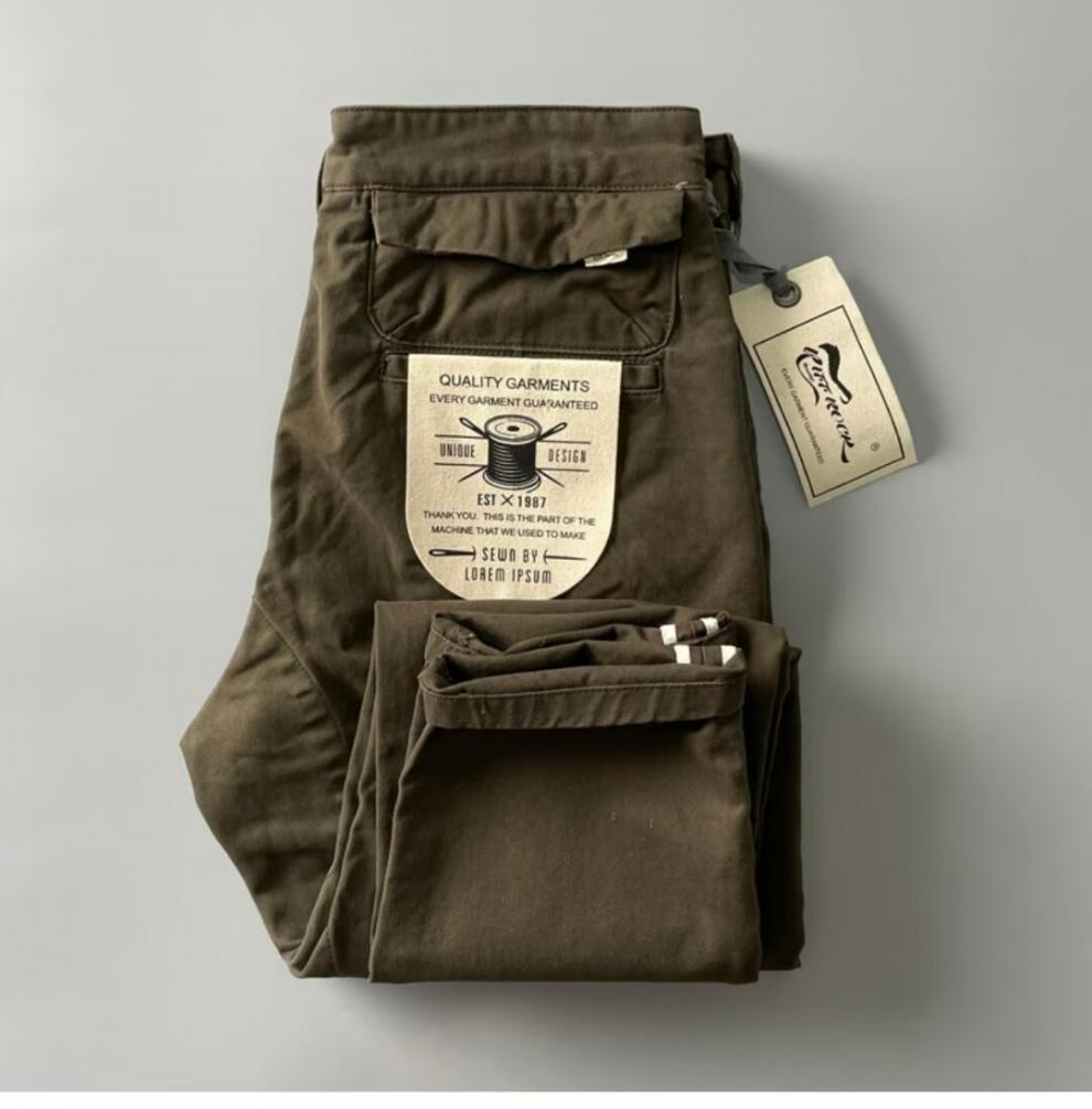 순면 미국 캐주얼 바지 남자 봄과 가을 두꺼운 바지 일본 스타일 레트로 아미 카지 작은 스트레이트 카키 작업 바지스토어 가기