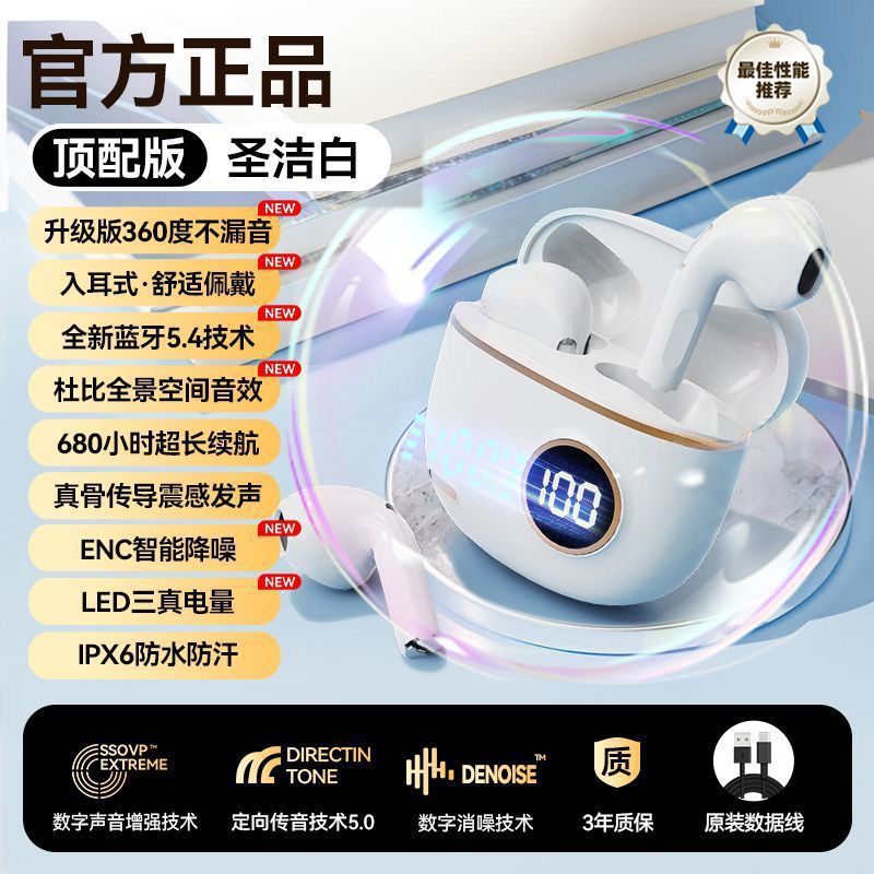 신형 무선 블루투스 이어폰 2024 스포츠용 고음질 인이어형 초장시간 소음 감소 배터리 수명 컴퓨터 블루투스 5.4스토어 가기