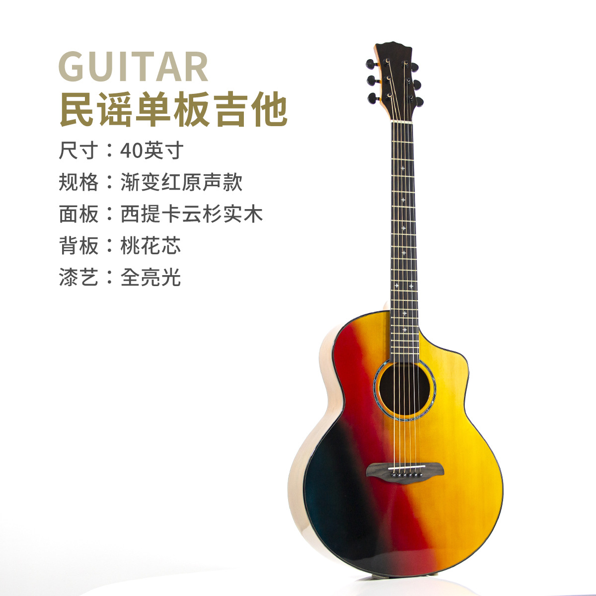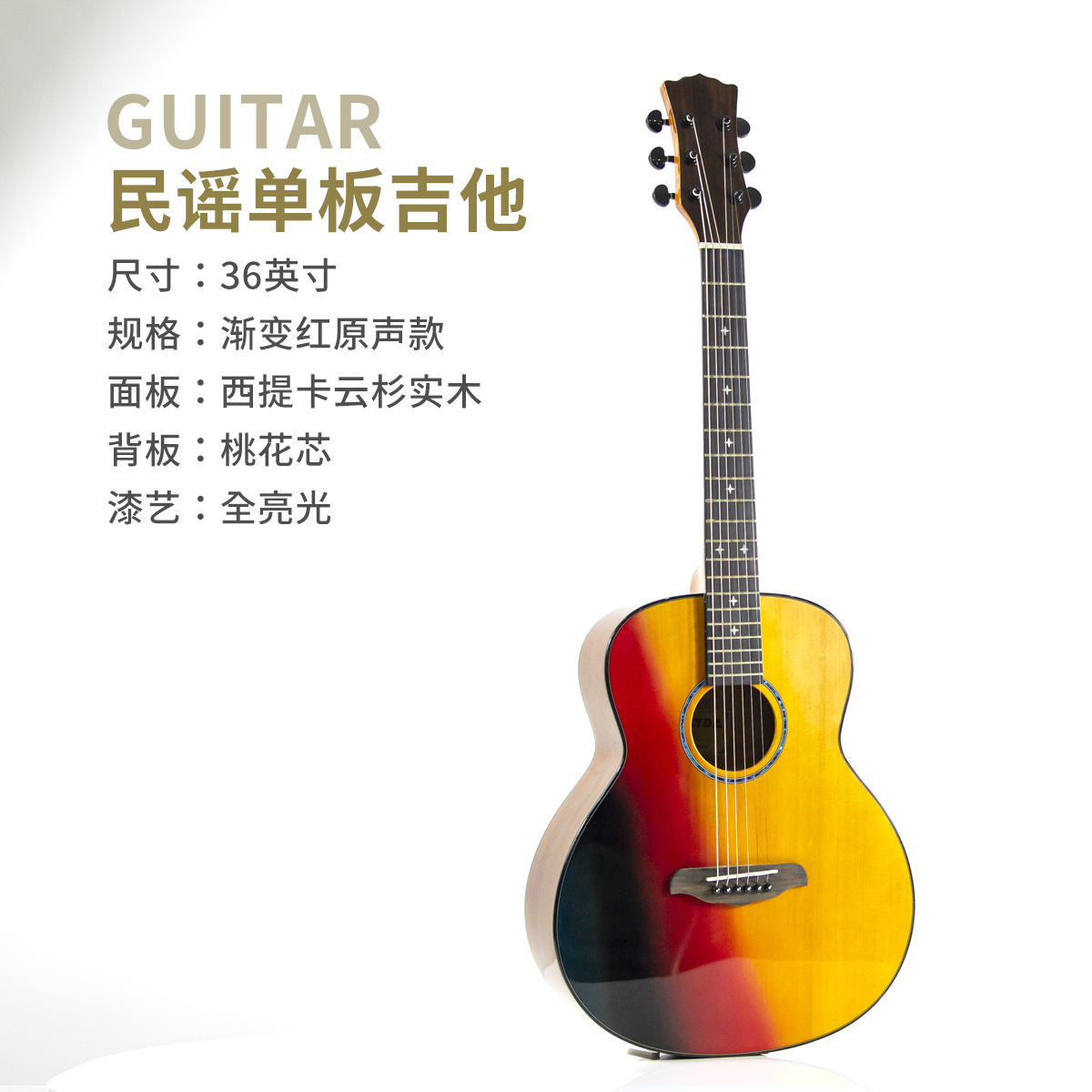 • 【 36inch OM 배럴】싱글보드 기타 - 그라데이션 레드