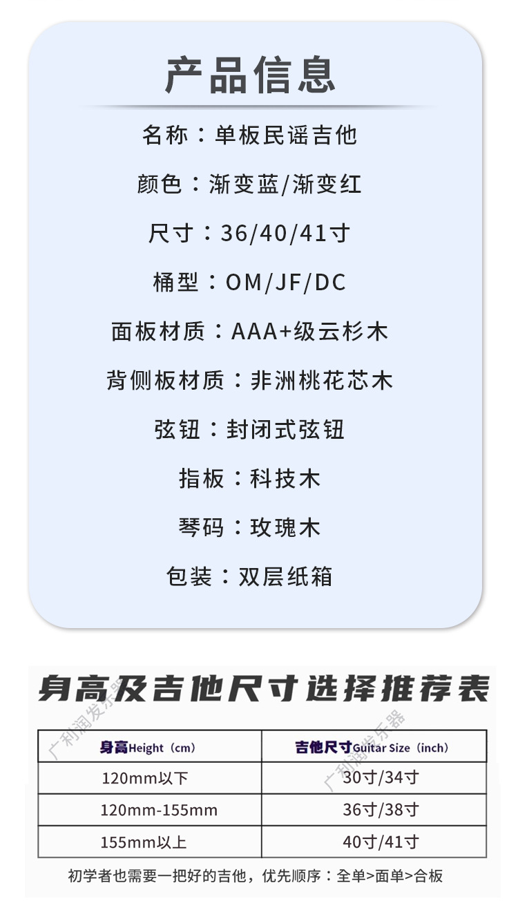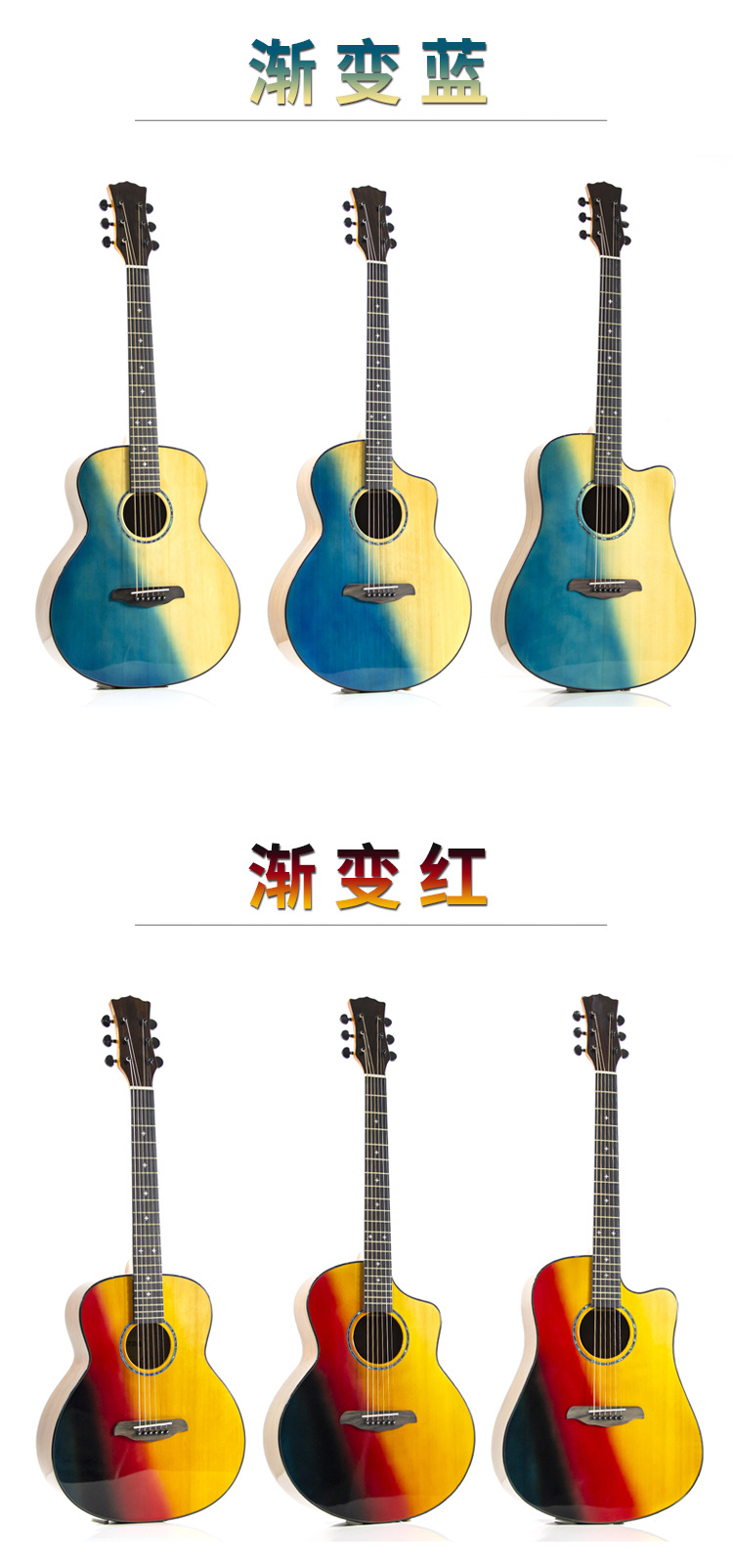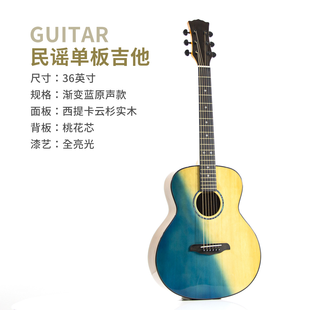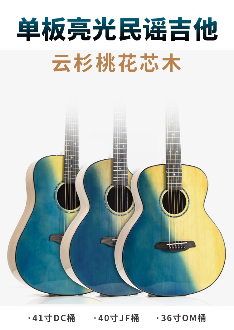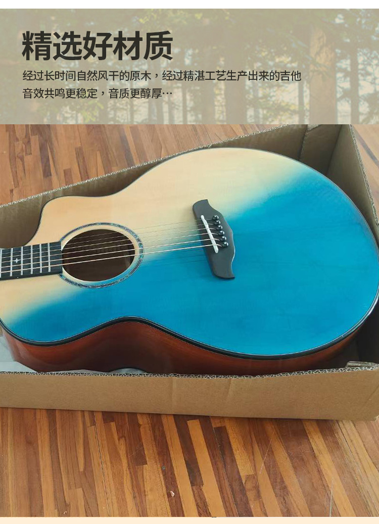 41 인치 포크 기타 베니어 솔리드 우드 그라디언트 블루 하이 컬러 가치 우드 기타 엔트리 레벨 고급 기타스토어 가기