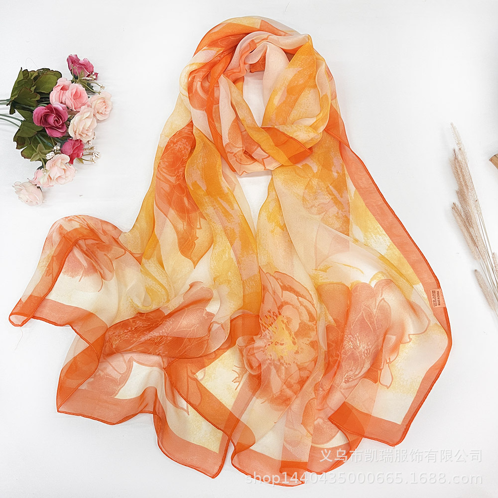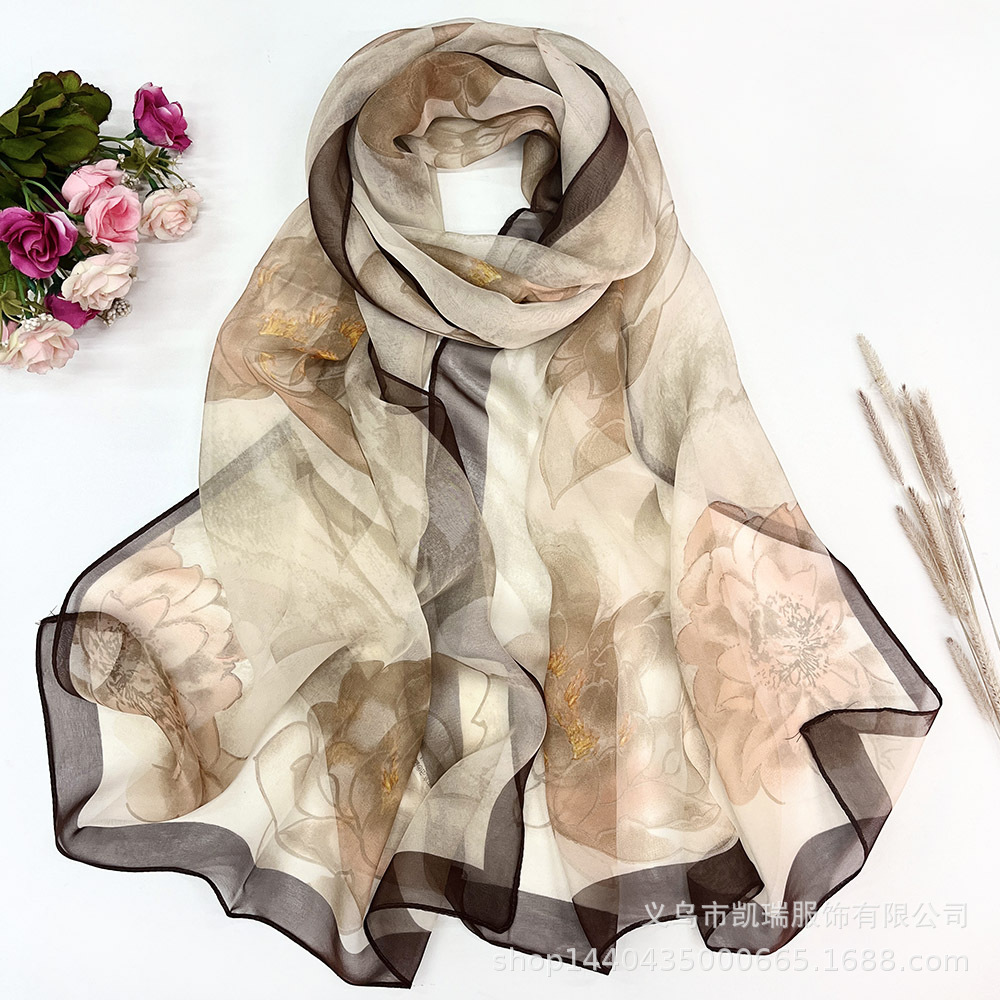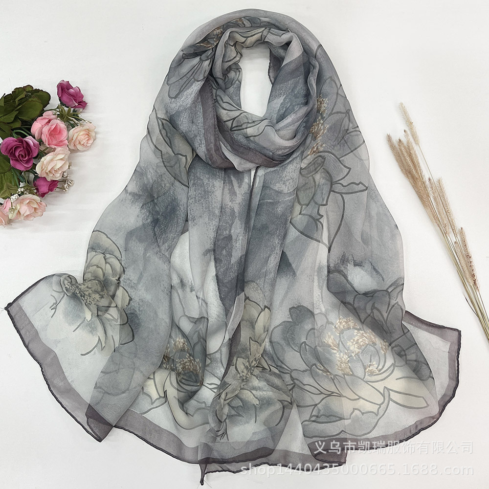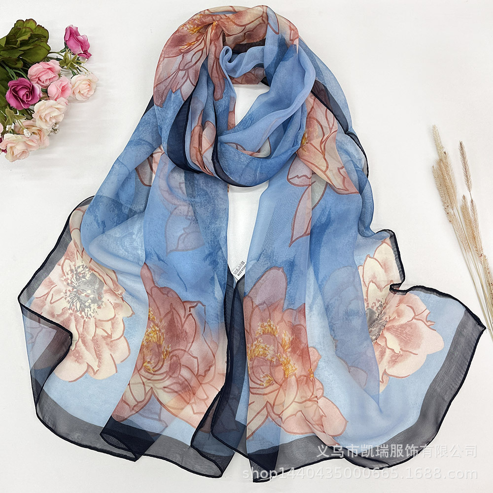 여름과 가을 새로운 인쇄 스카프 여성 올 매치 풀 로터스 장식 목도리 국경 대외 무역 도매 스카프 선 스크린스토어 가기