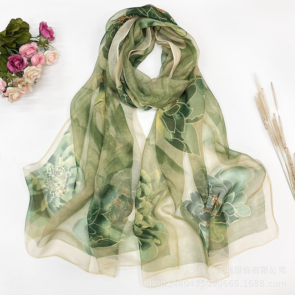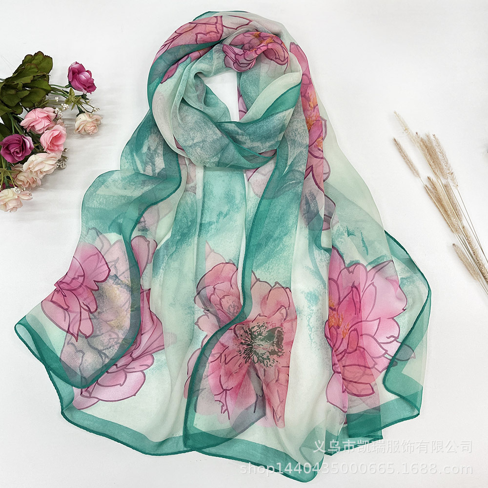 여름과 가을 새로운 인쇄 스카프 여성 올 매치 풀 로터스 장식 목도리 국경 대외 무역 도매 스카프 선 스크린