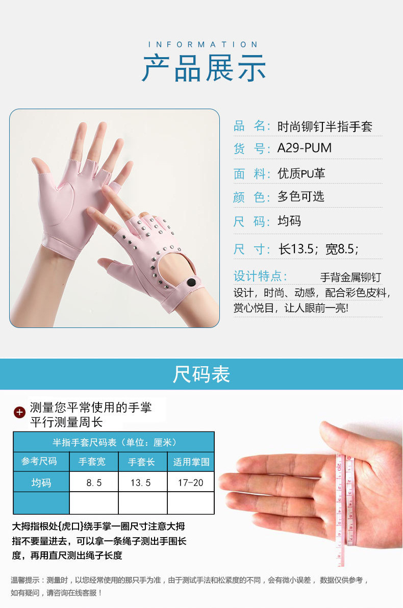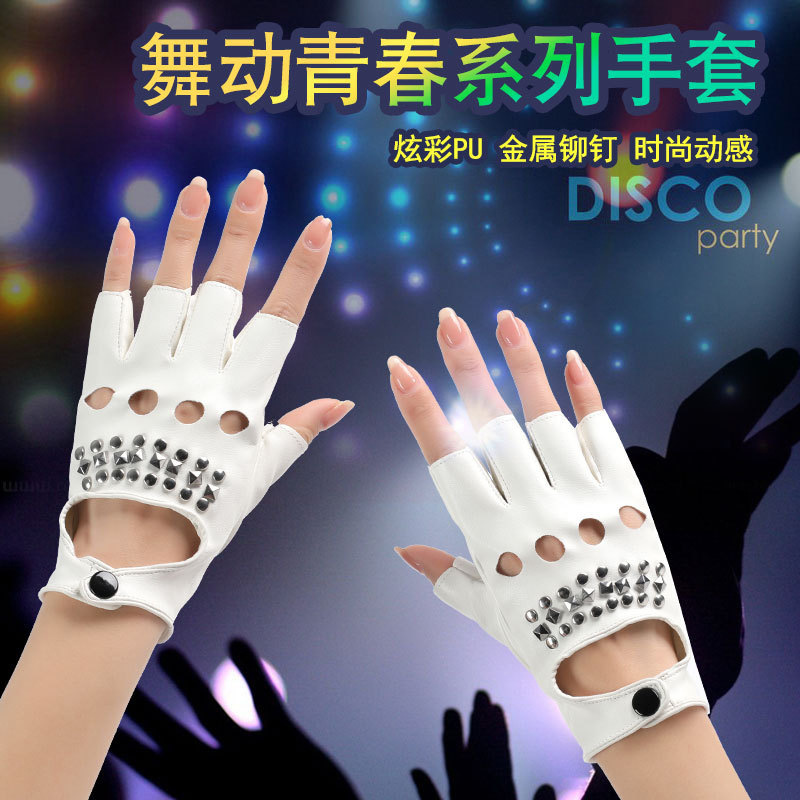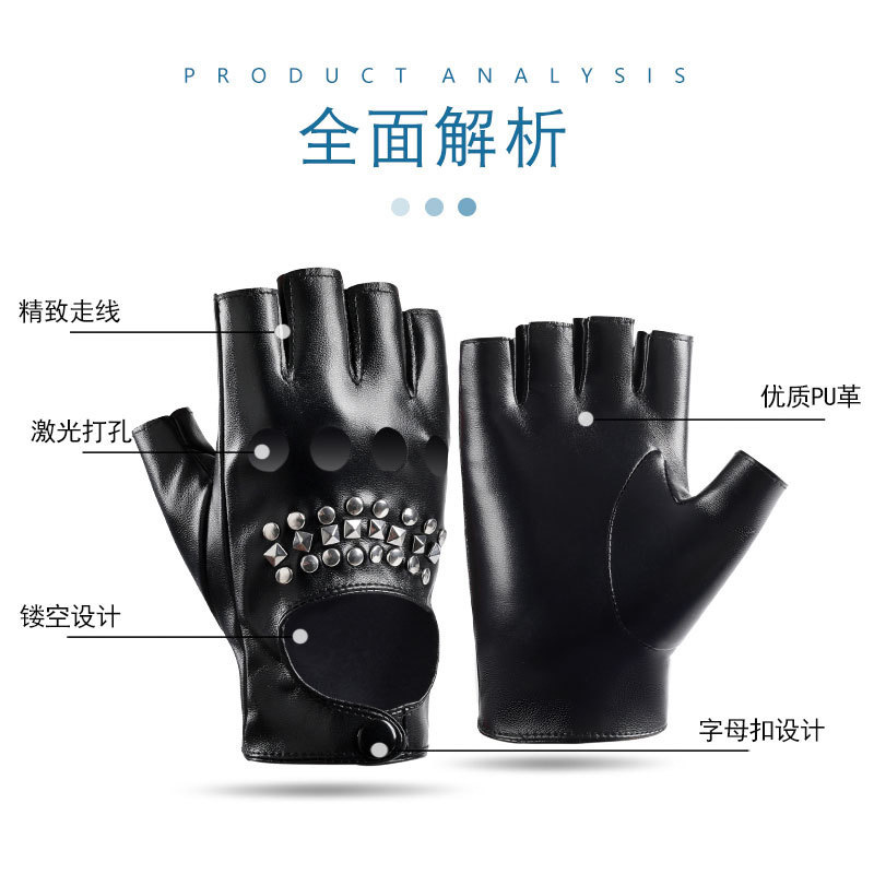 퍼포먼스 하프 핑거 남성 리벳 PUcosplay 패션쇼 패션 펑크 무대 힙합 오토바이 활주로 장갑스토어 가기