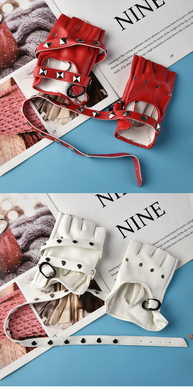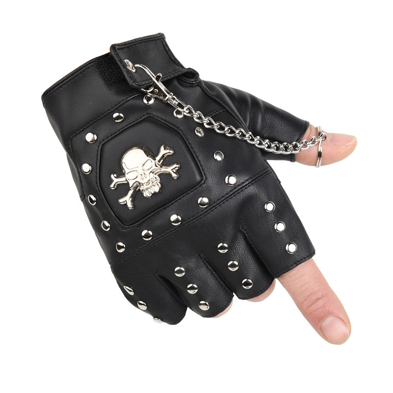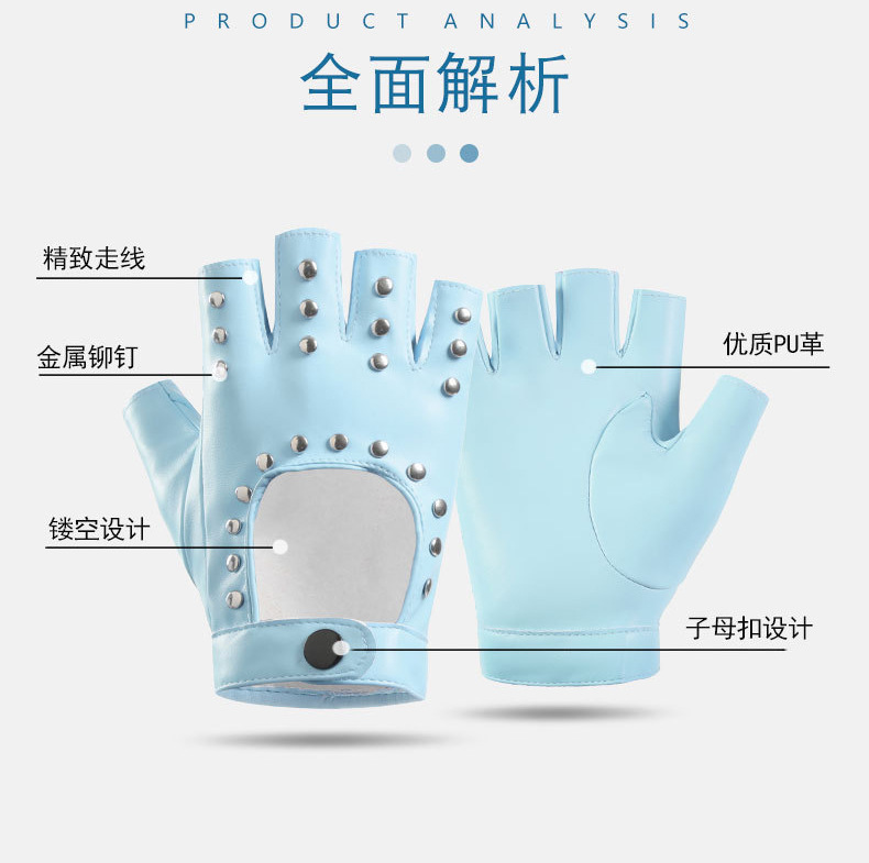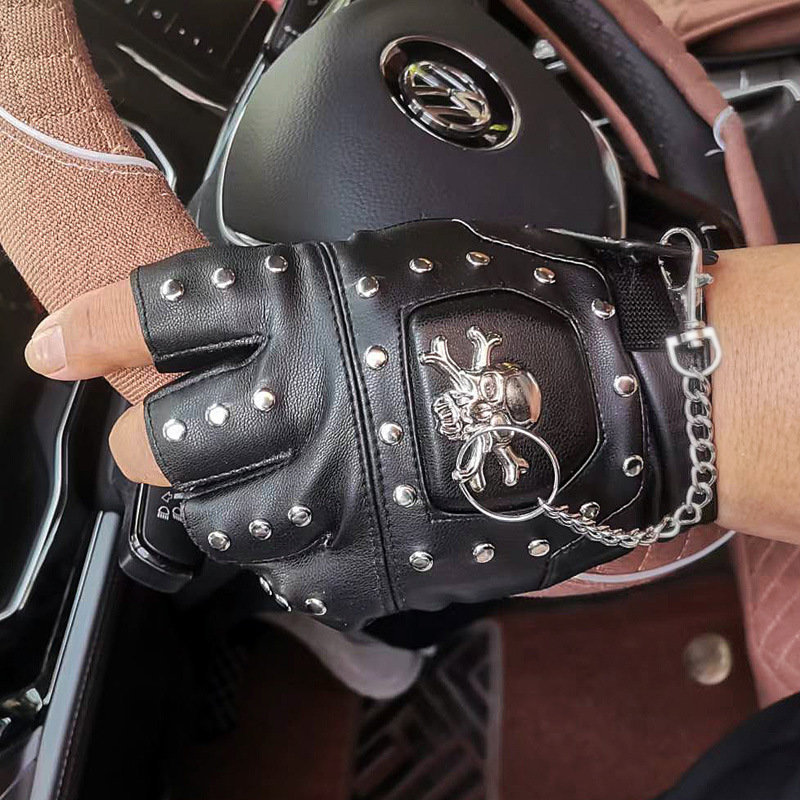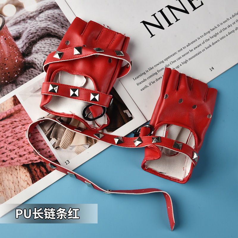 퍼포먼스 하프 핑거 남성 리벳 PUcosplay 패션쇼 패션 펑크 무대 힙합 오토바이 활주로 장갑