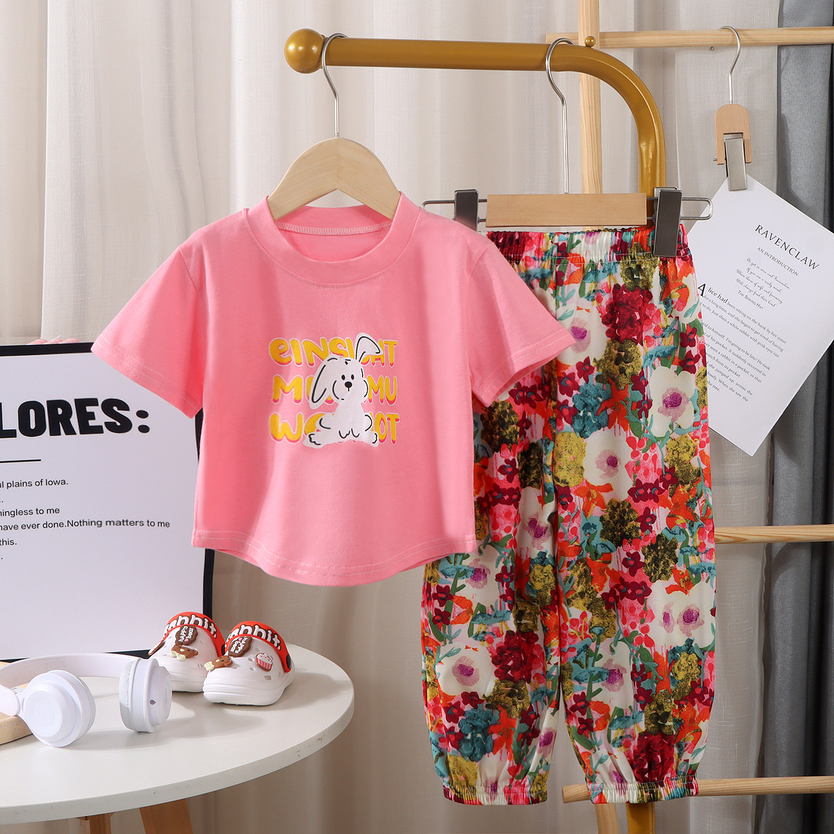 소년 소녀 세트 2025 새 여름 면화 반팔 티셔츠 아동복 아기 외국식 투피스 세트스토어 가기