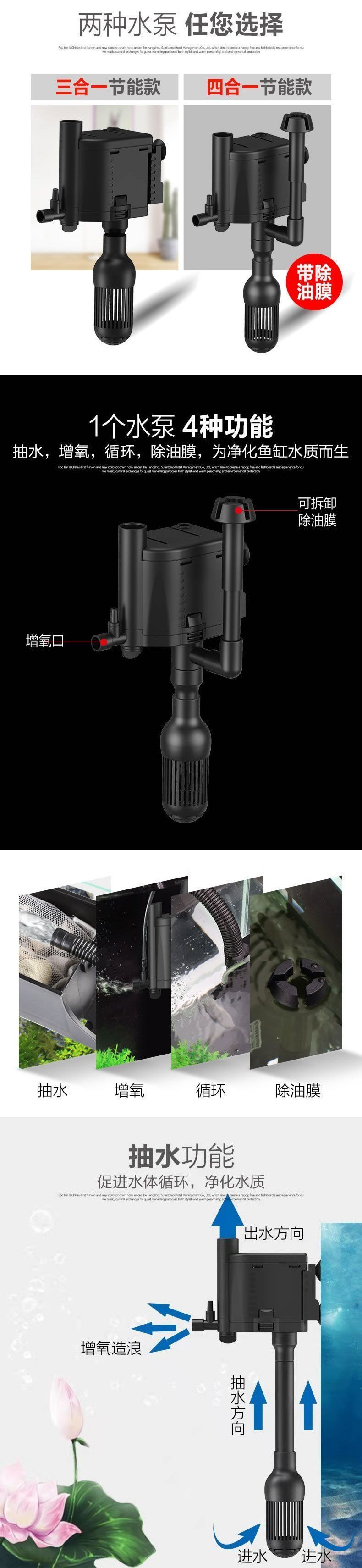 물고기 탱크 물 펌프 순환 펌프 3 대 1 산소 펌프 다기능 잠수정 펌프 산소 수족관 4 무음 필터 상자
