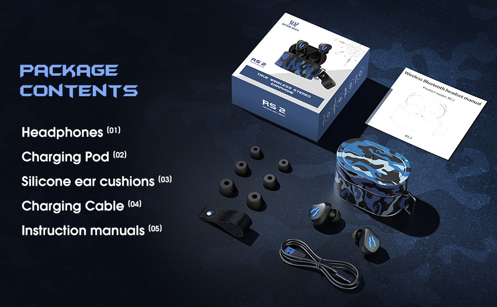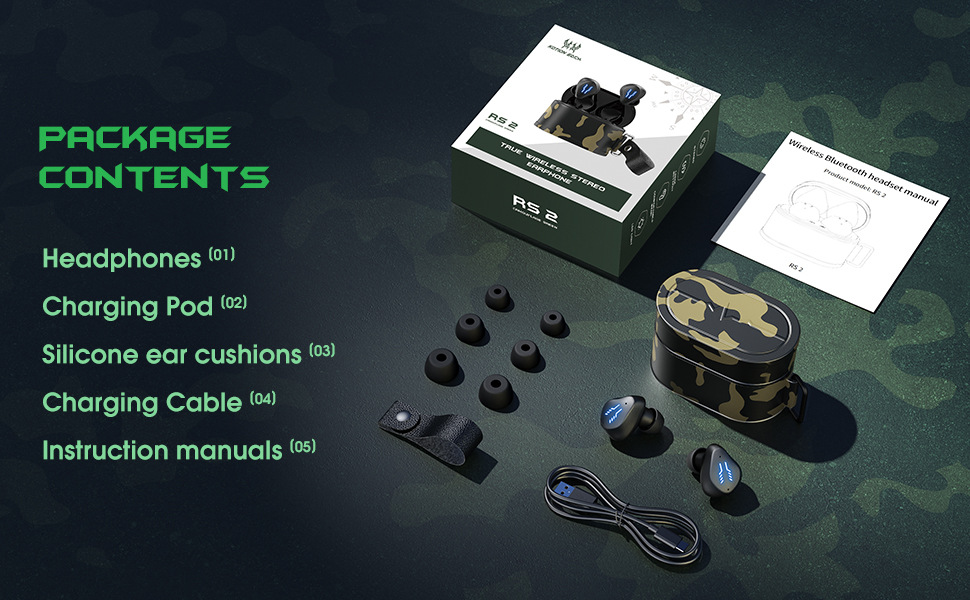 INTRO KOTION EACH 국경 폭발 RS2 위장 무선 블루투스 헤드셋 인 이어 높은 음질 긴 내구성