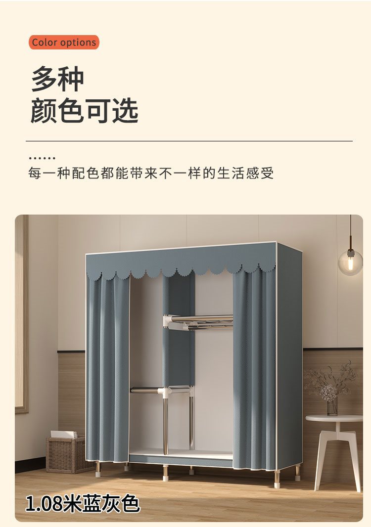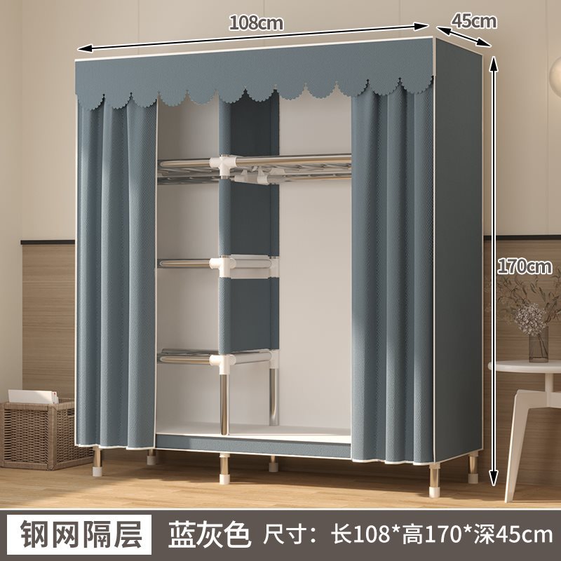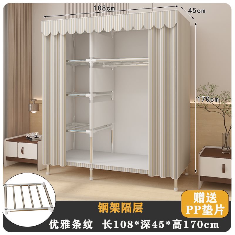 간단한 옷장 홈 침실 임대 룸 저장 캐비닛 어셈블리 풀 스틸 프레임 내구성 천 옷장 옷장