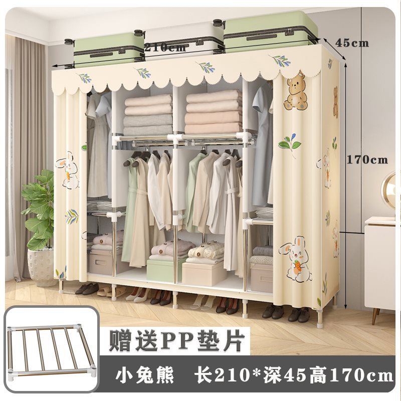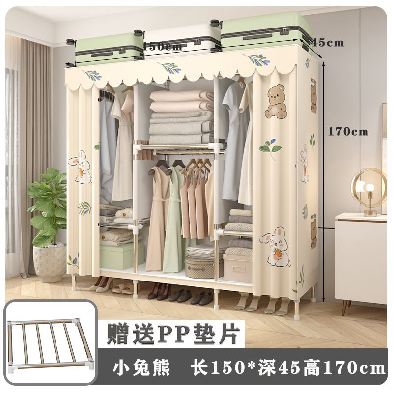 간단한 옷장 홈 침실 임대 룸 저장 캐비닛 어셈블리 풀 스틸 프레임 내구성 천 옷장 옷장스토어 가기