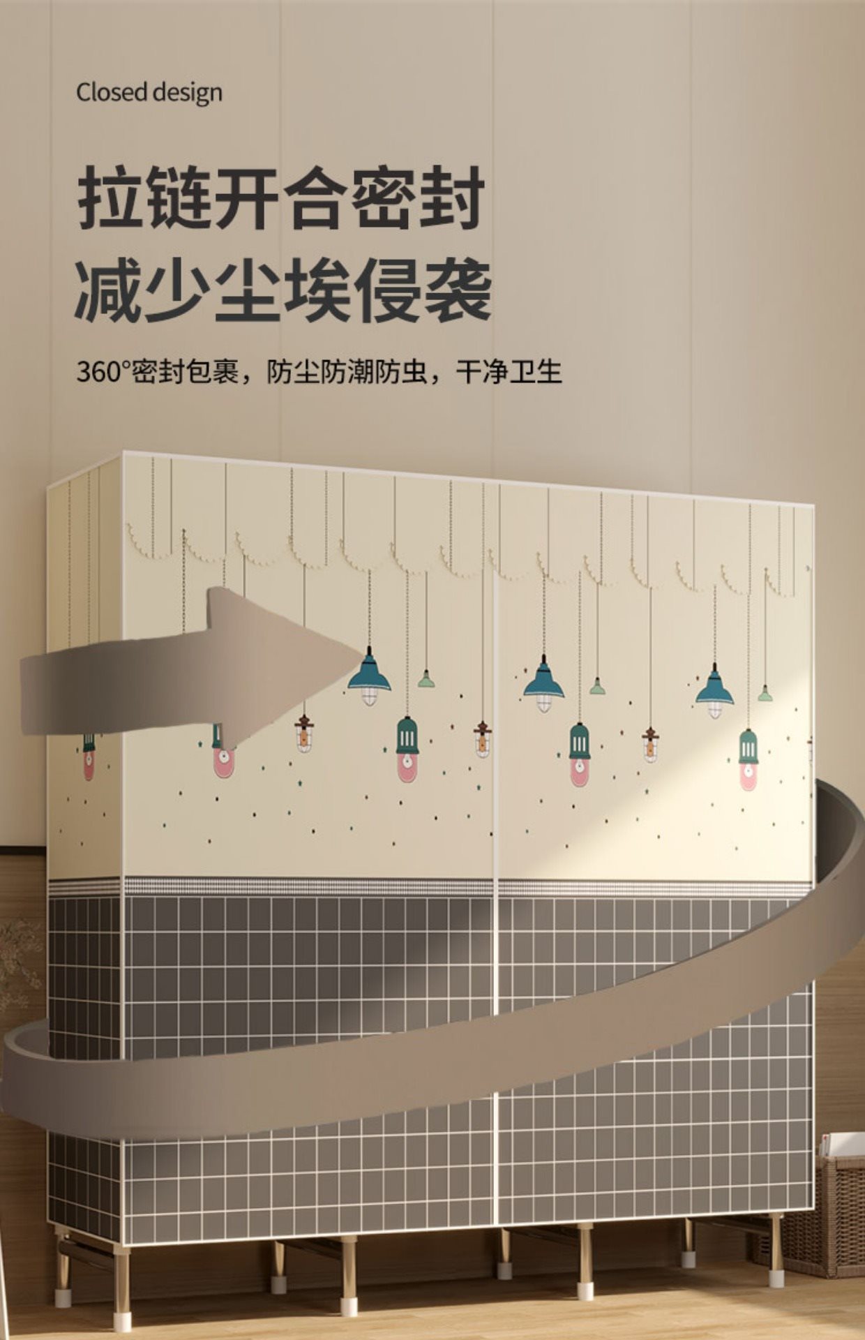 • [다중 수납공간 수납] 길이 108cm, 체크 컬러 (업그레이드 및 강화 모델, 무료 PP 패드)