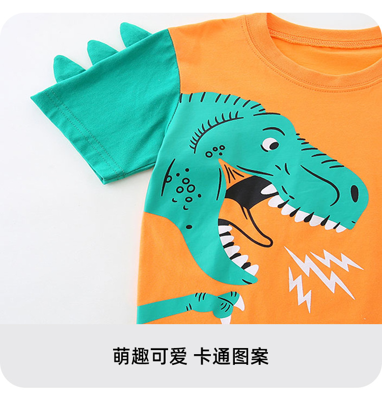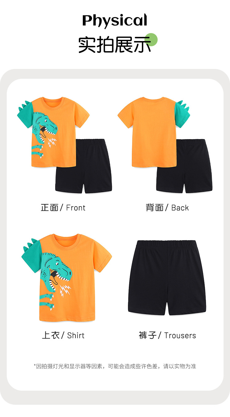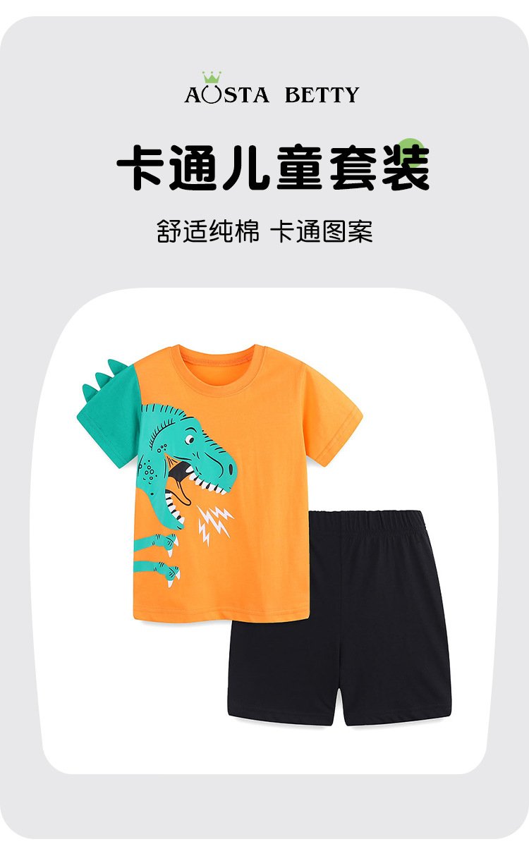 여름 새 소년 세트 유럽과 미국 스타일 어린이 반바지 세트 만화 공룡 인쇄 아동복 세트 2