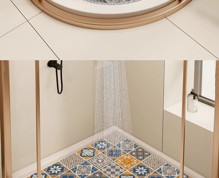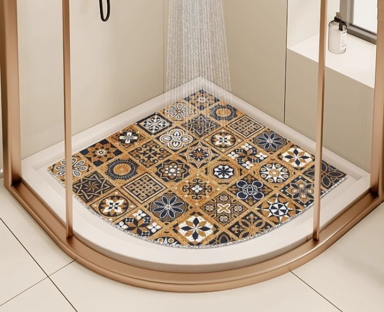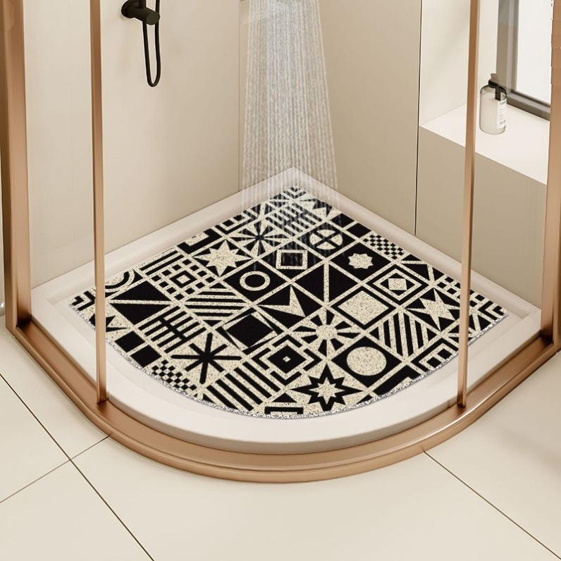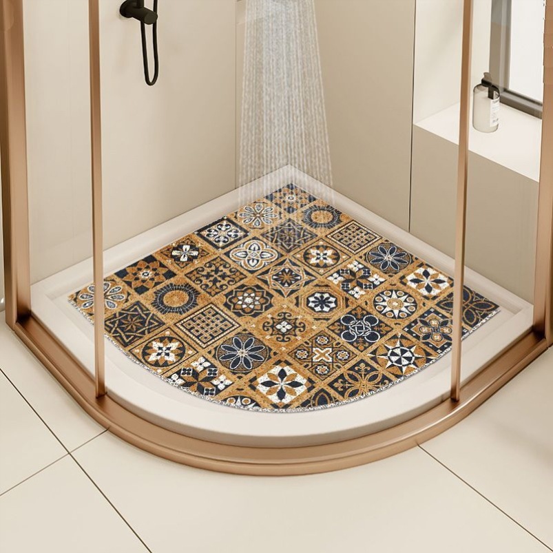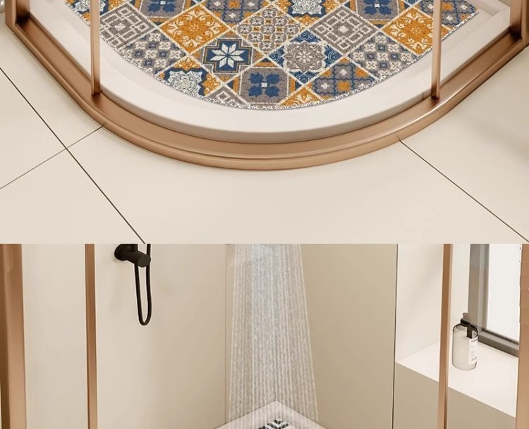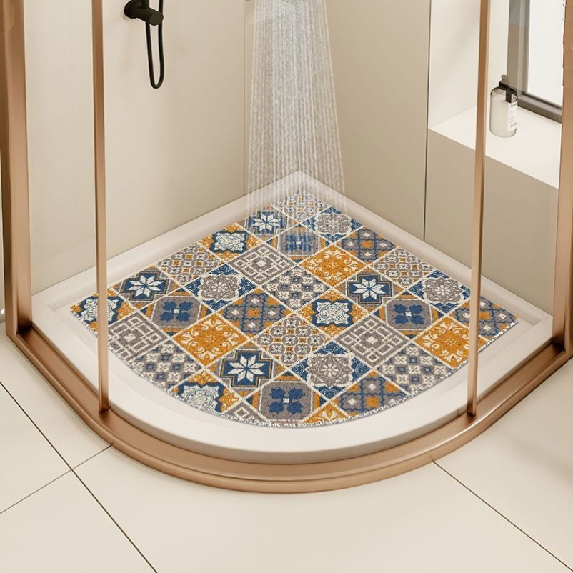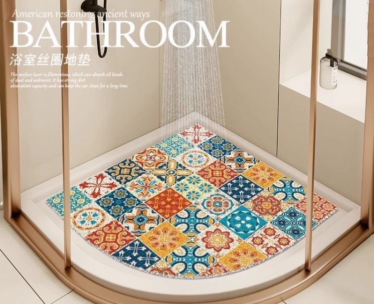 복고풍 곡선 샤워 룸 풋 매트 화장실 미끄럼 방지 카펫 팬 모양의 욕실 욕조 빈 실크 링 플로어 매트