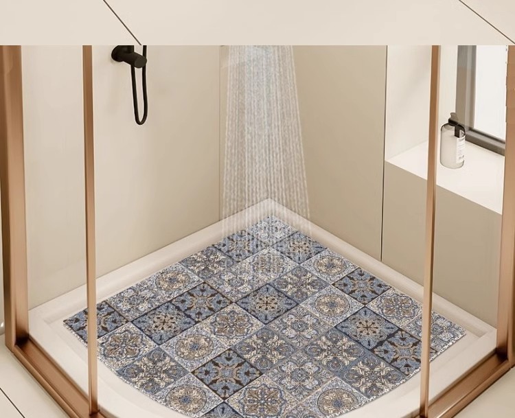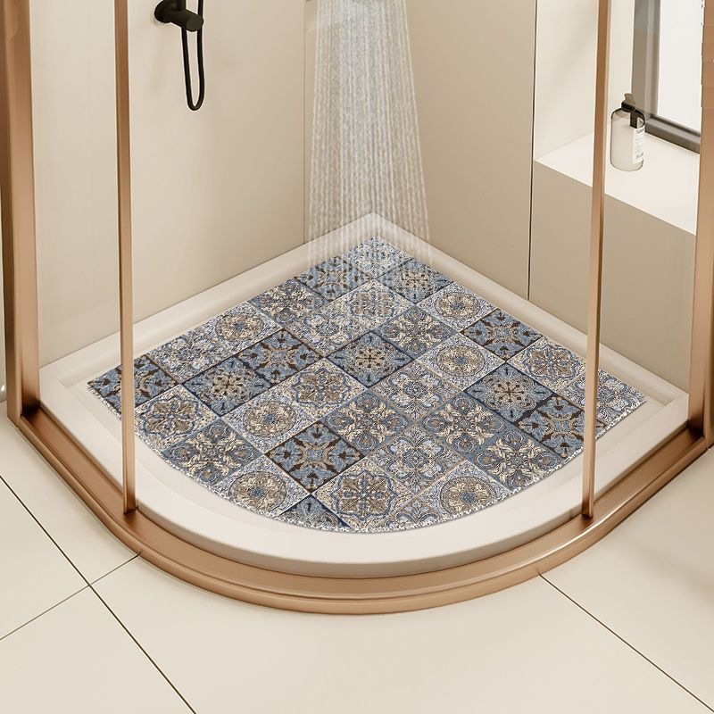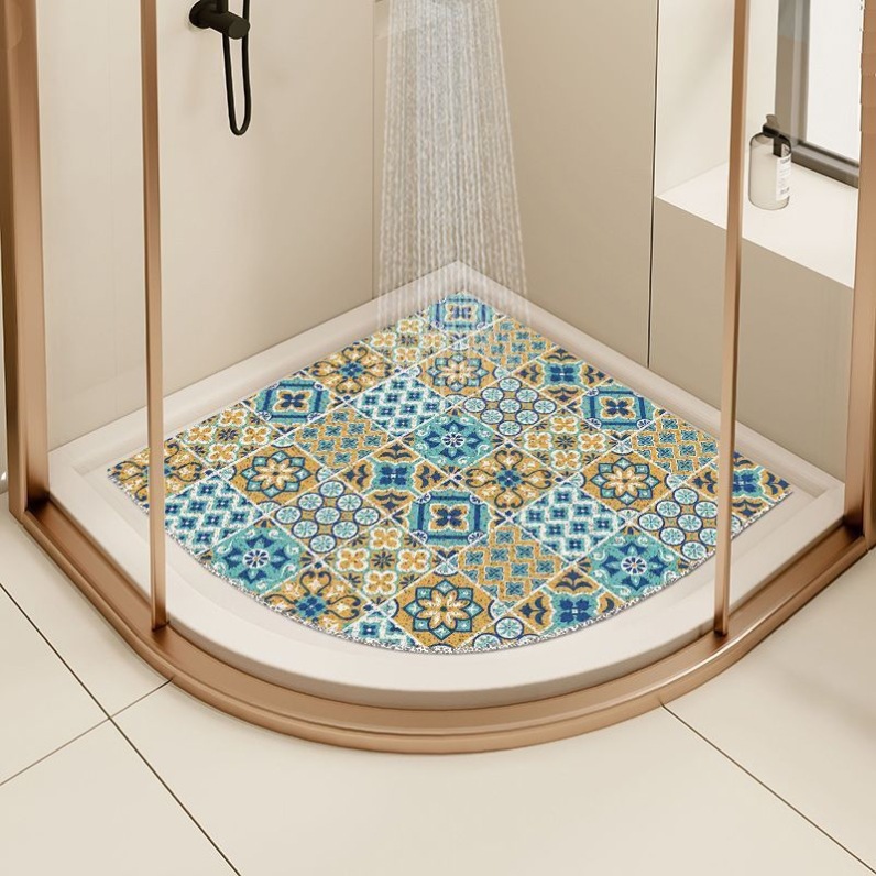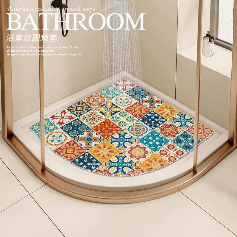 복고풍 곡선 샤워 룸 풋 매트 화장실 미끄럼 방지 카펫 팬 모양의 욕실 욕조 빈 실크 링 플로어 매트스토어 가기