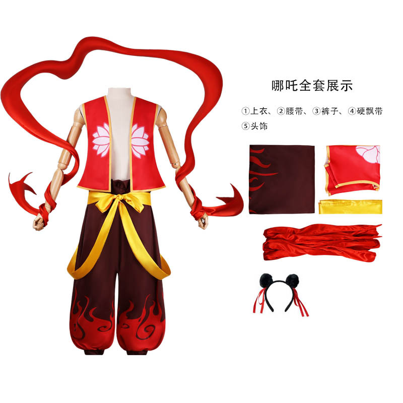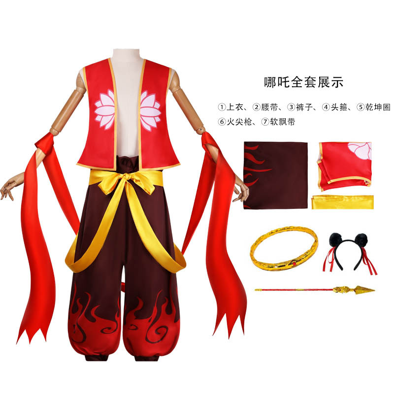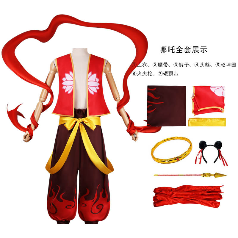 Nezha의 Magic Pupil cos Clothing Nezha 2 어린이 남성 및 여성 Bellyband 코스프레 골동품 옷 풀 세트