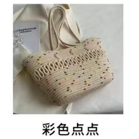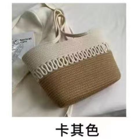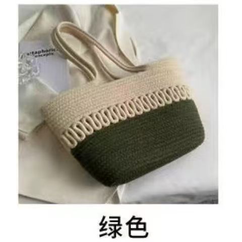 대용량 로프 버킷 가방 여성의 2025 예술적 신선한 컬러 중공 손 밀짚 가방 어깨 비치 백