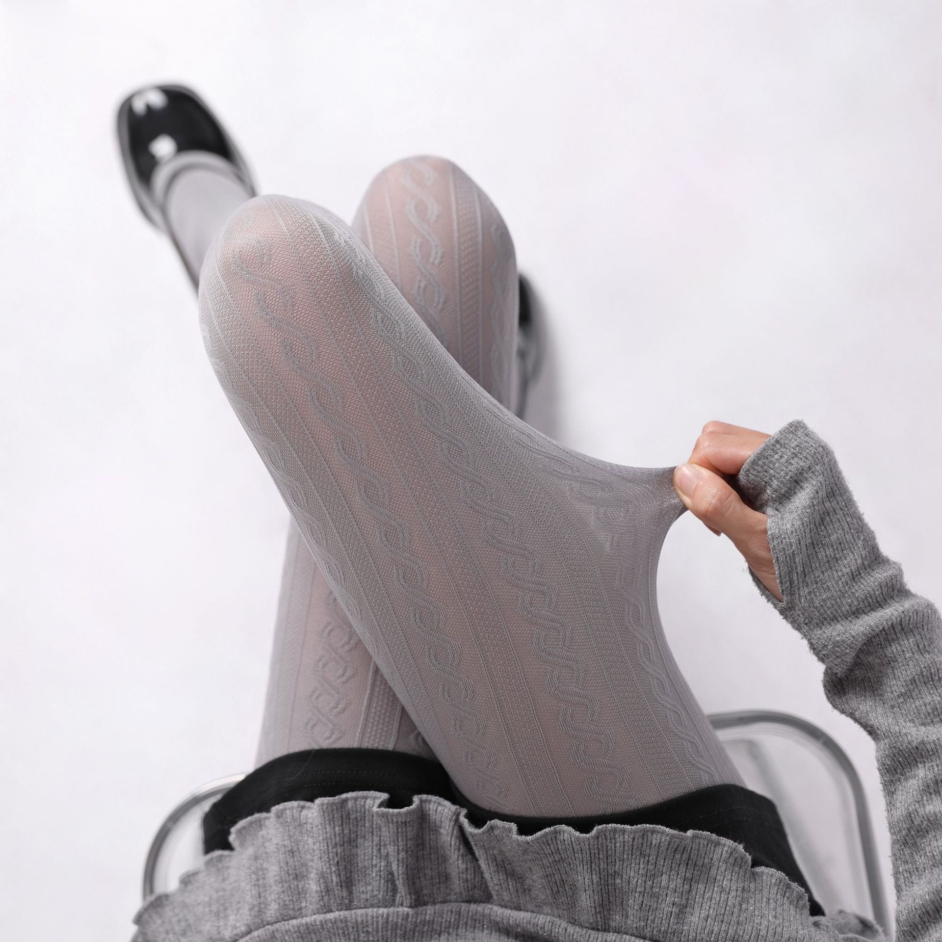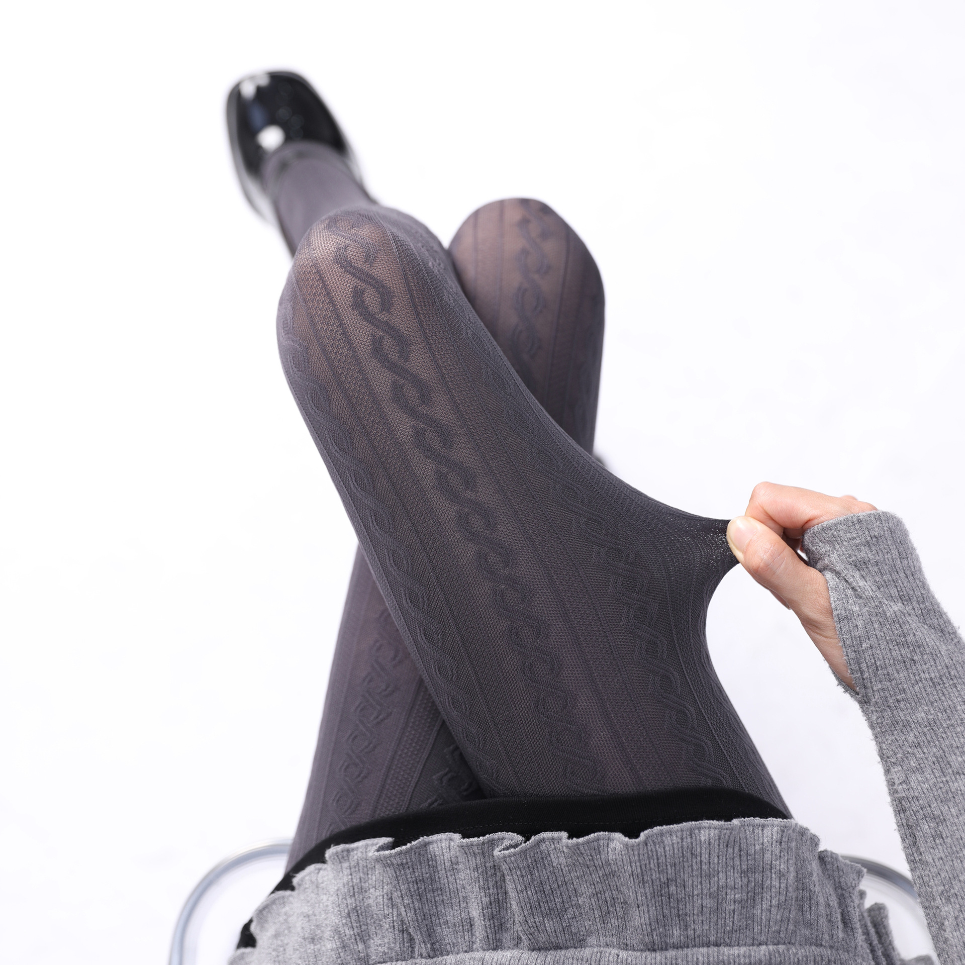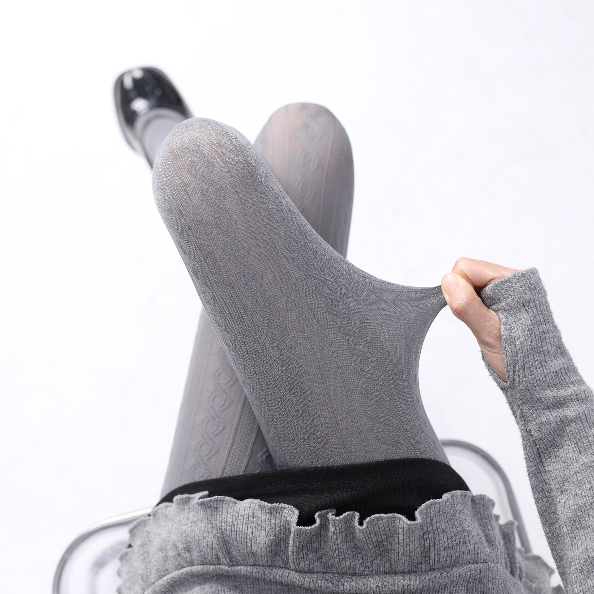 회색 레깅스 여성의 봄과 가을 달콤한 폴드 닷 보우 외부 팬티 스타킹 슬리밍 따뜻한 회색 레깅스