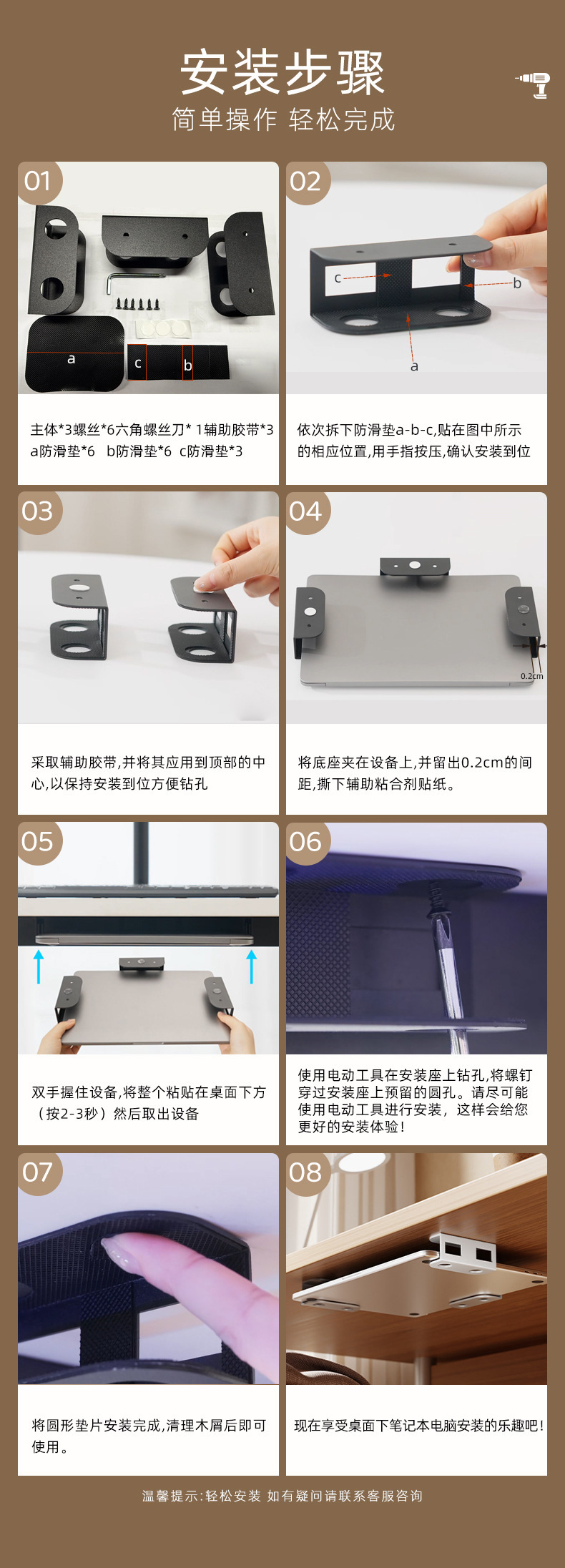 국경 간 도매 노트북 수납 스탠드, 책상 아래 컴퓨터용 숨김형 창의적인 금속 트레이, 슬라이드식 레이어드 랙