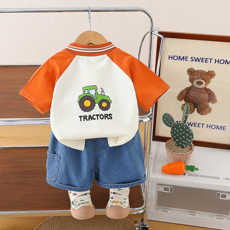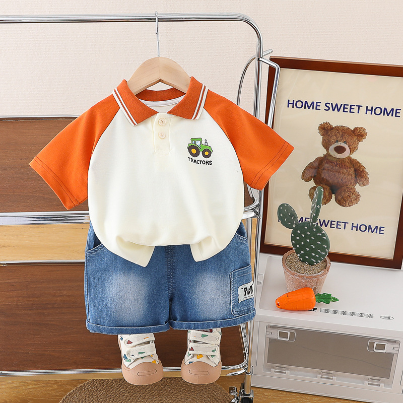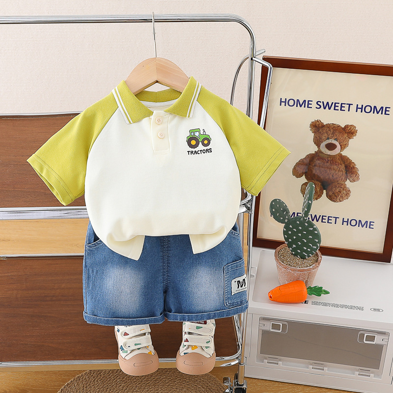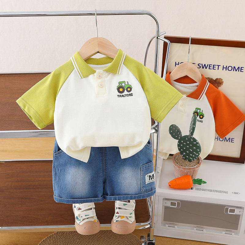 소년 2025 새로운 랩 칼라 짧은 소매 세트 아기 여름 새로운 패션 아기 옷 어린이 잘 생긴 어린이 의류스토어 가기