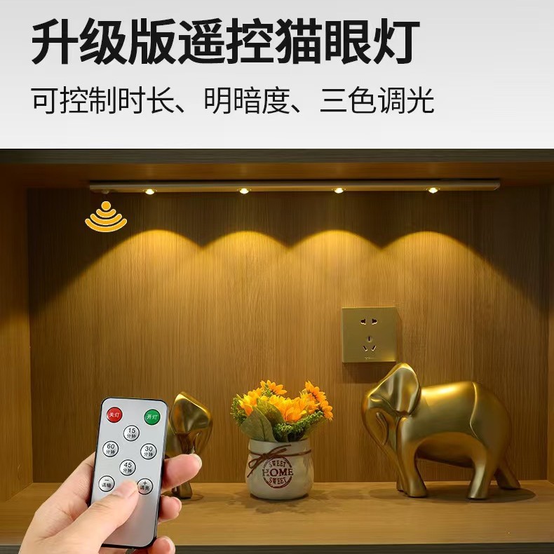 직접 공급되는 크로스보더 PVC 스마트 센서 캣아이 캐비닛 조명(리모컨 포함) 힐 모양 캣아이 야간 조명 LED 램프