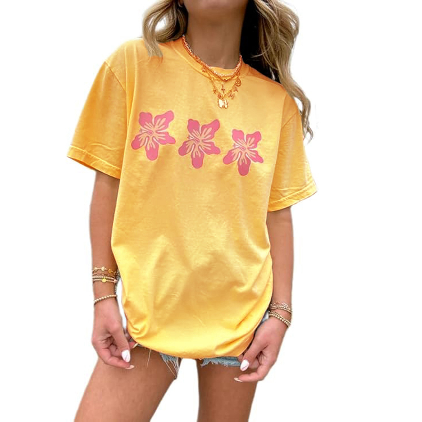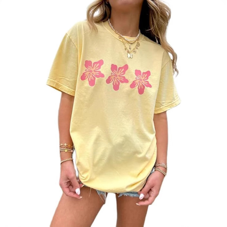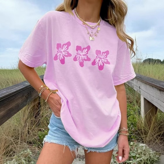 대외 무역 여성상의 크로스 경계 무역 아마존 작은 꽃 프린트 컬러 코튼 티셔츠스토어 가기